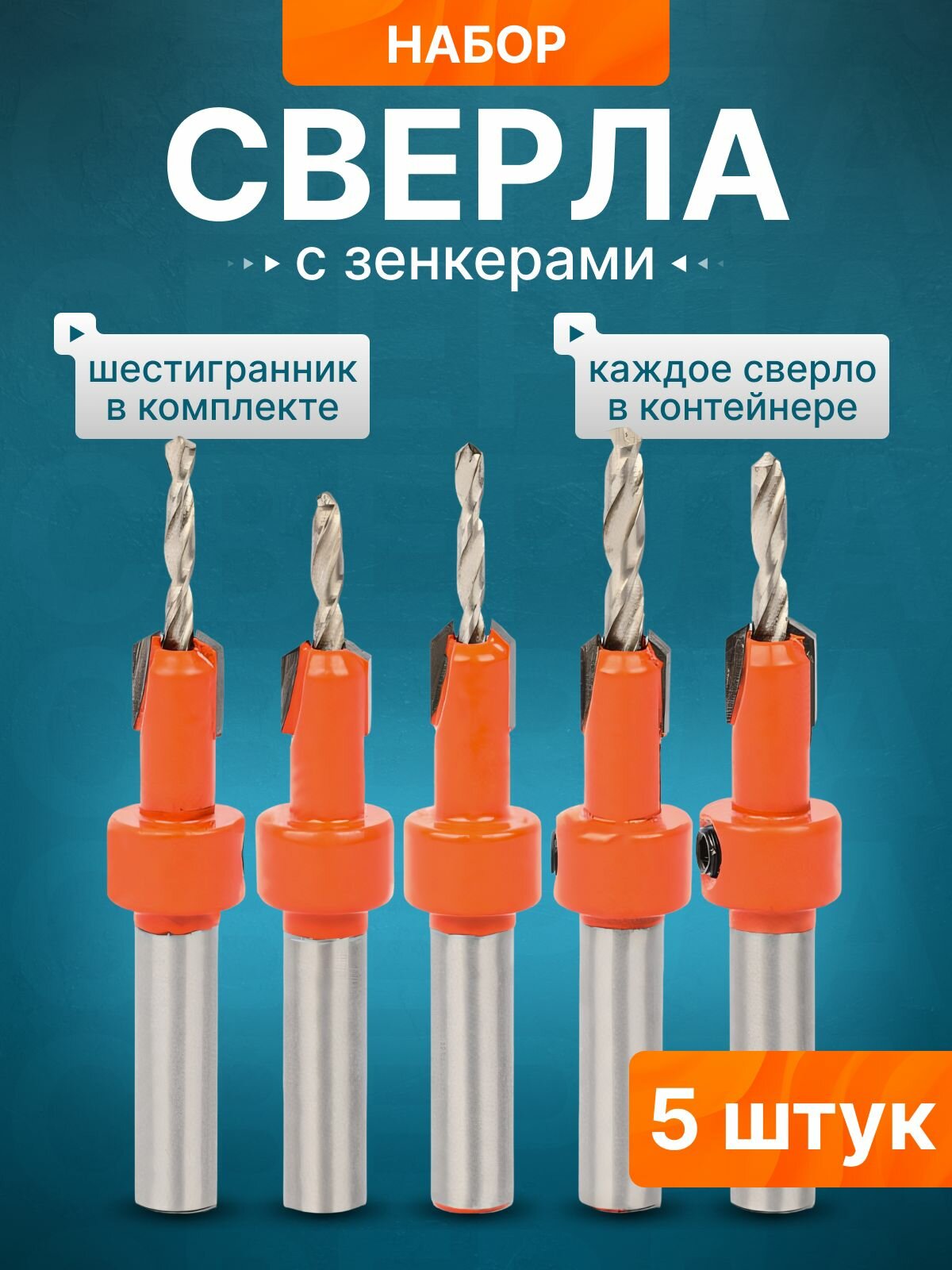 Купить Сверло с зенкером 8мм. комплект 5 шт. диаметром 2.8мм. 3мм. 3.2мм. 3.5мм. 4мм.