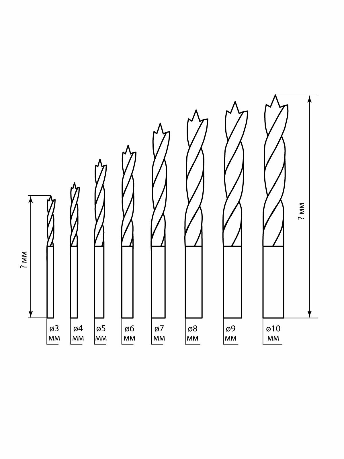 Набор сверл по дереву, 8 шт. (3-4-5-6-7-8-9-10) мм, полир, HSS, пласт. уп, "Рубин" TDM интересное: