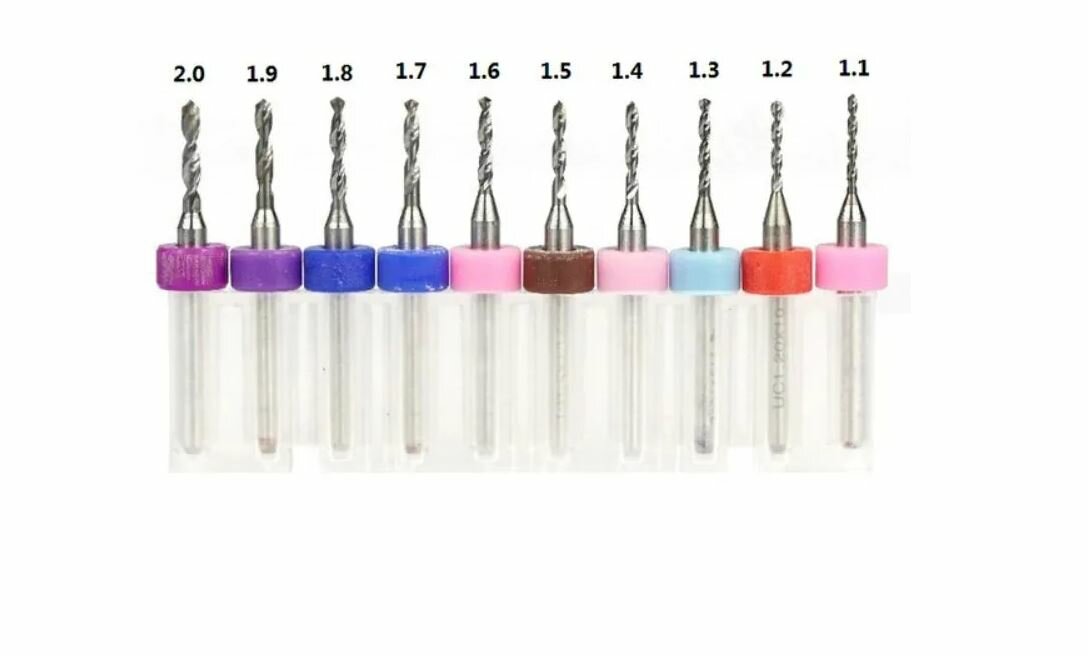 Мини Сверла по металлу Твердосплавные 2,1 - 3,0 мм, Утолщенный хвостовик ANGO-UFA / Набор Микросверел для печатных плат 10шт