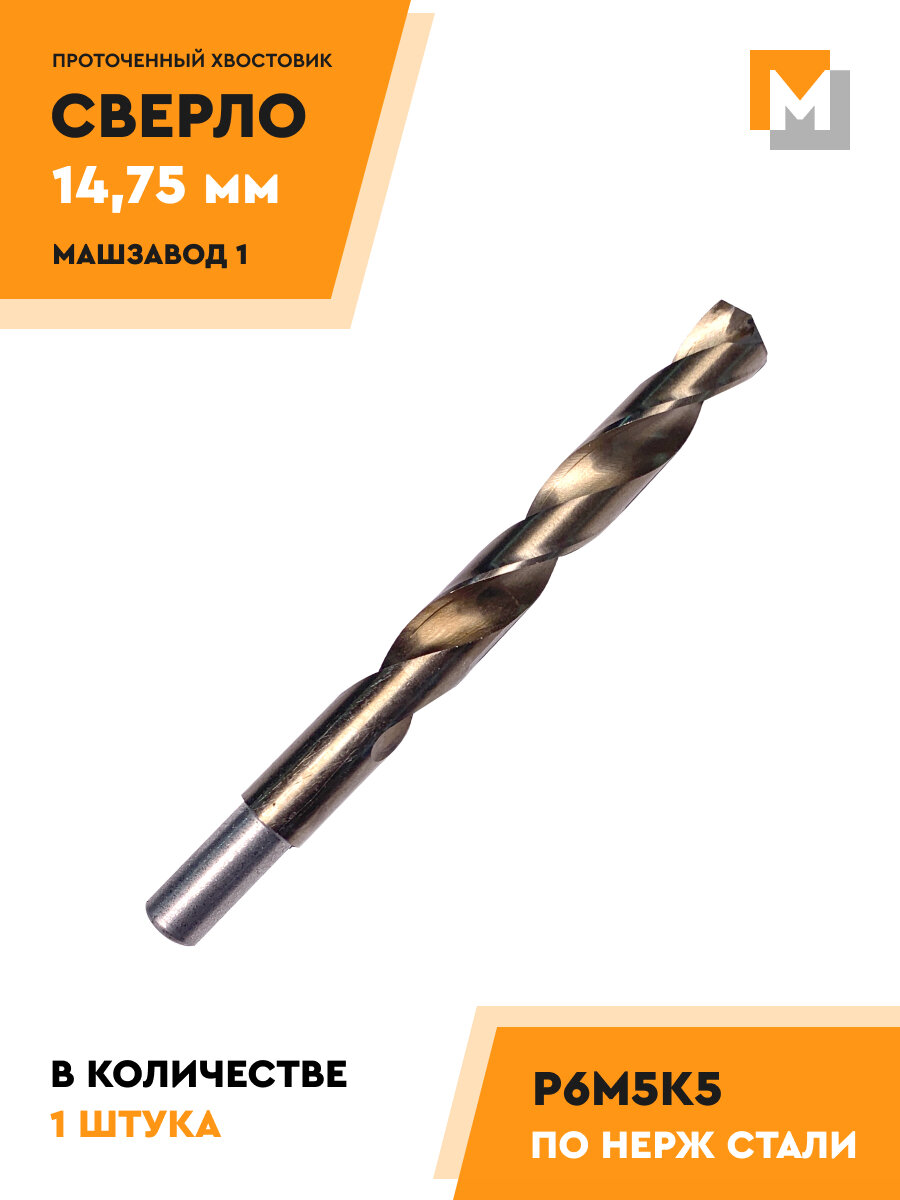 Купить Сверло по металлу 14,75 мм хв. 12.5 мм Р6М5К5 кобальтовое машзавод 1
