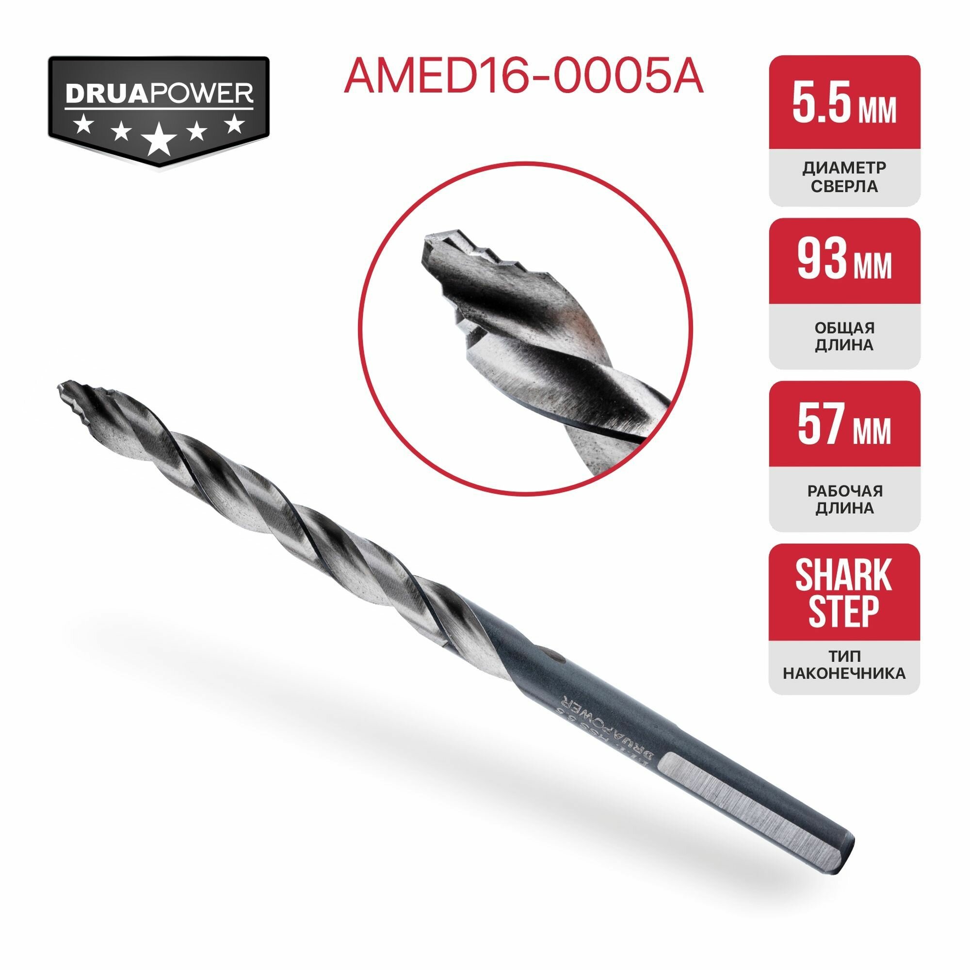 Купить Сверло по металлу самоцентрирующееся P.I.T. серия DRUA AMED16-0005A (HSS, 5,5мм, 93х57мм, SharkStep)