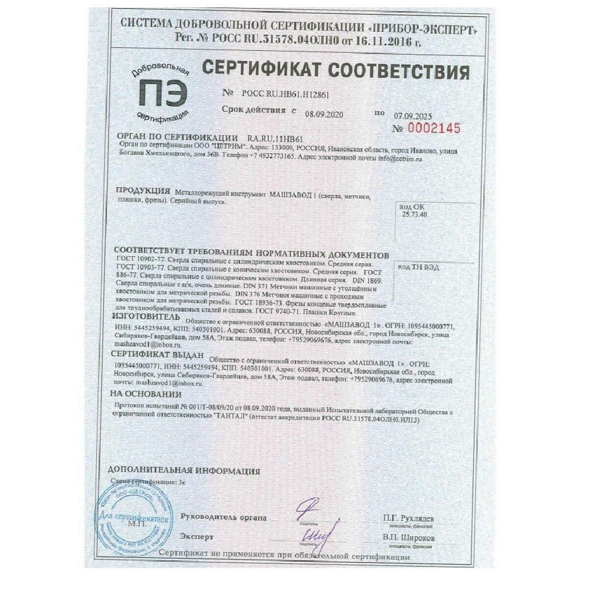 Сверло по металлу 20 мм КМ2 Р6М5К5 кобальтовое машзавод 1