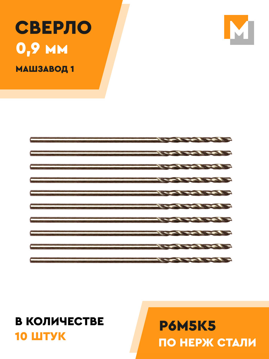 Купить Сверло по металлу 0.9 мм - 10 шт. Р6М5К5 кобальтовое машзавод 1