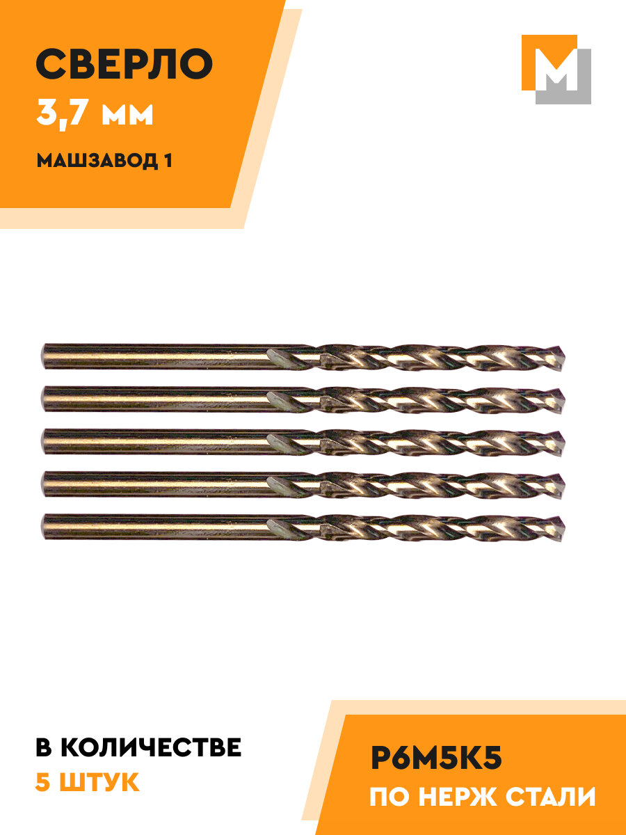 Купить Сверло по металлу 3,7 мм - 5 шт. Р6М5К5 кобальтовое машзавод 1
