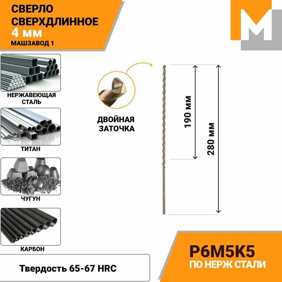 СохранитьСверло по металлу кобальтовое 4,0 мм - 1 шт. Р6М5К5 Сверхдлинное интересное: