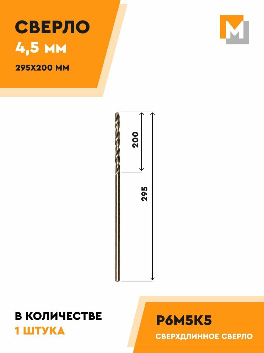 Купить Сверло по металлу кобальтовое 4,5 мм - 1 шт. Р6М5К5 Сверхдлинное