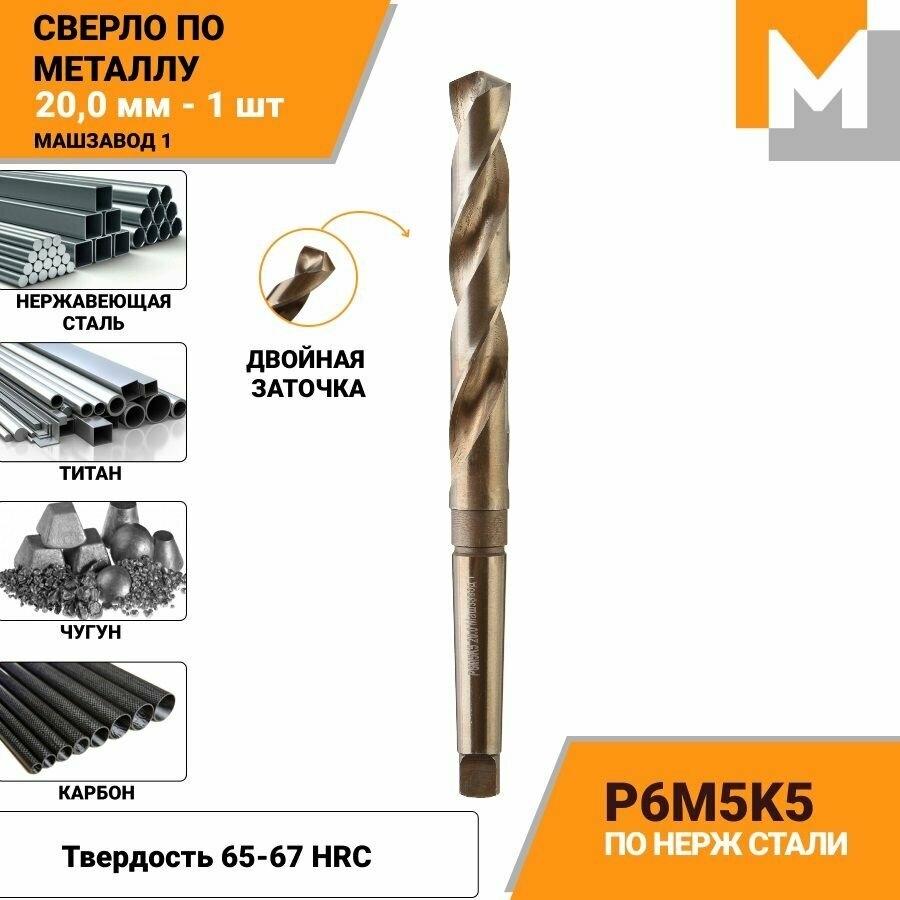 Сверло по металлу 20,0 мм хв. 12.5 мм Р6М5К5 кобальтовое машзавод 1