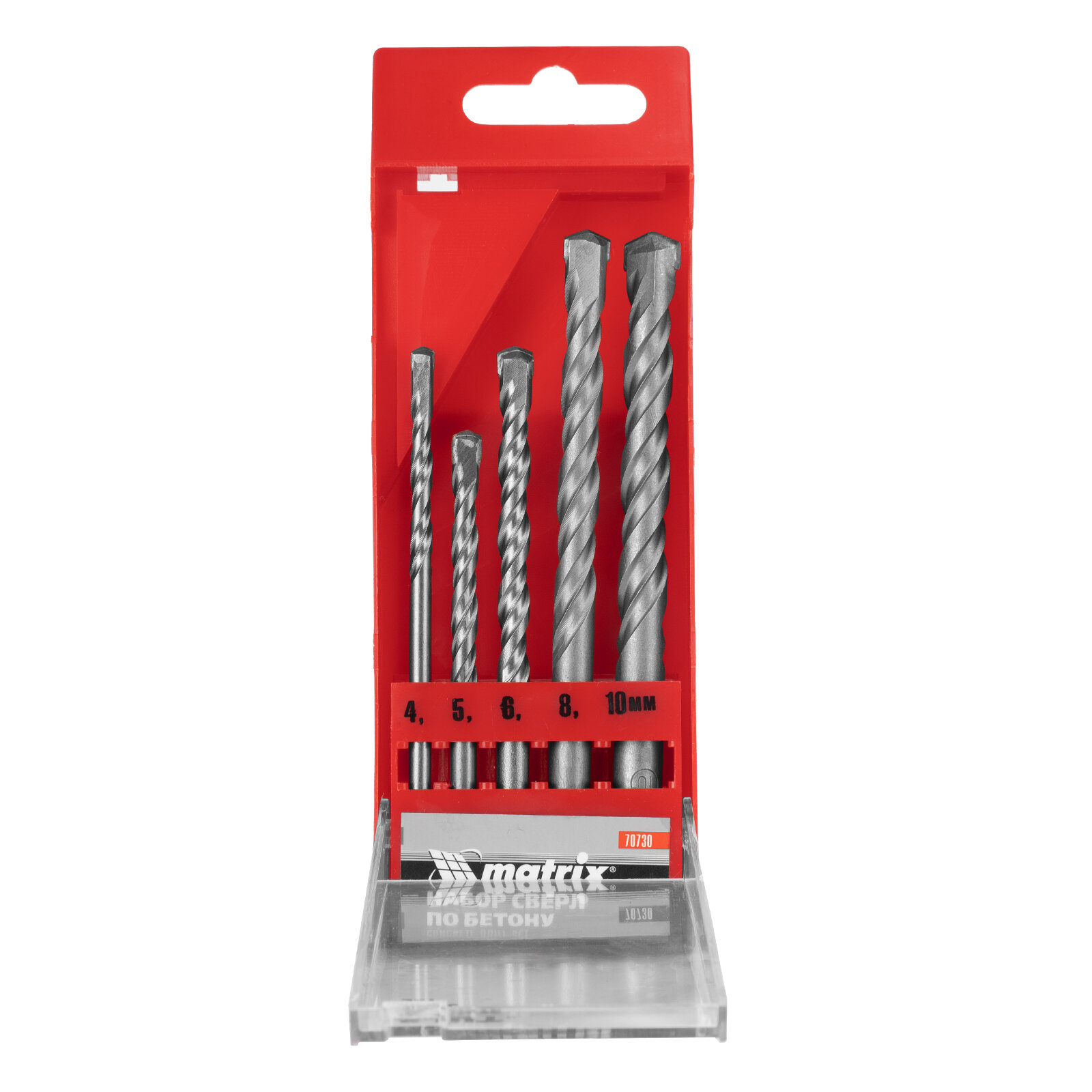 Купить Набор сверл по бетону Matrix, 4, 5, 6, 8, 10 мм, твердосплавные пластины и цилиндрические хвостовики, в кейсе, 70730