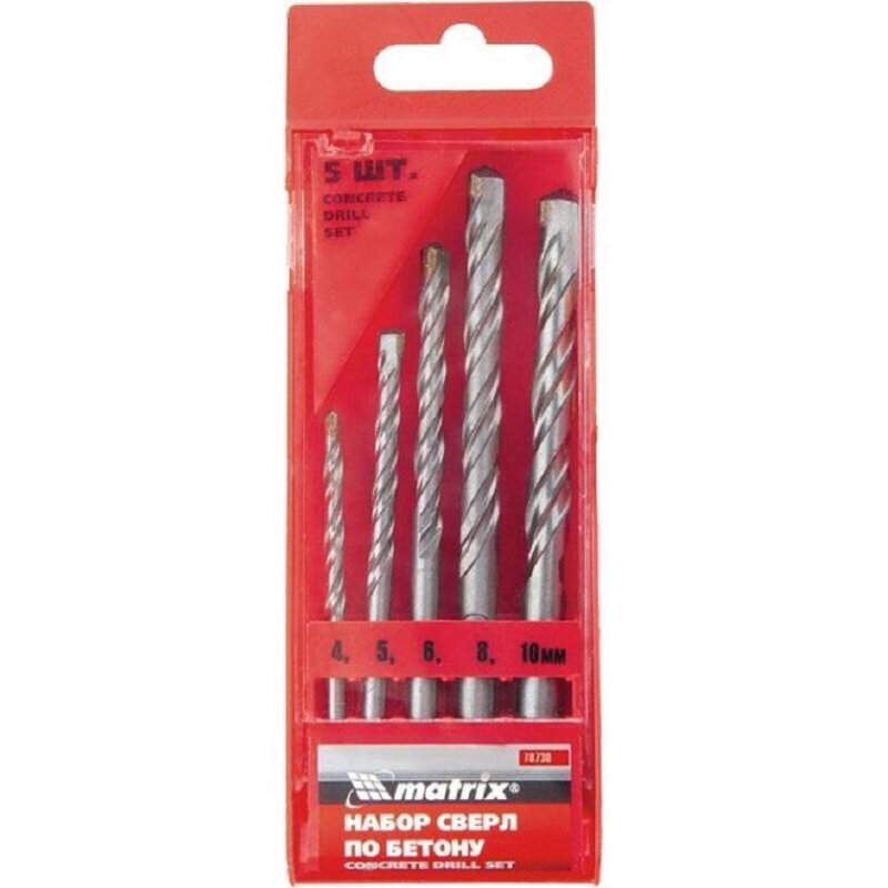 Комплект 4 наб, Набор сверл по бетону 4-5-6-8-10 мм Matrix 70730 интересное:
