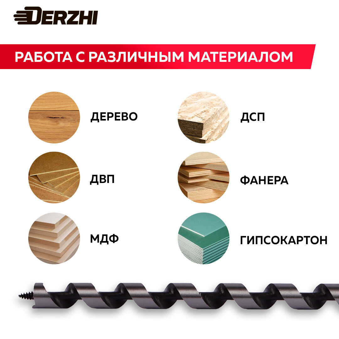 Сверло DERZHI, винтовое, шестигранный хвостовик, по дереву, 25x460мм
