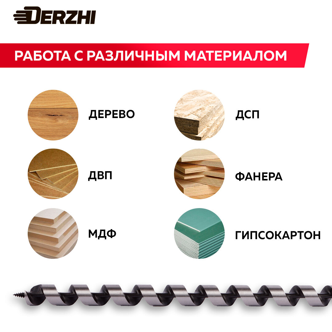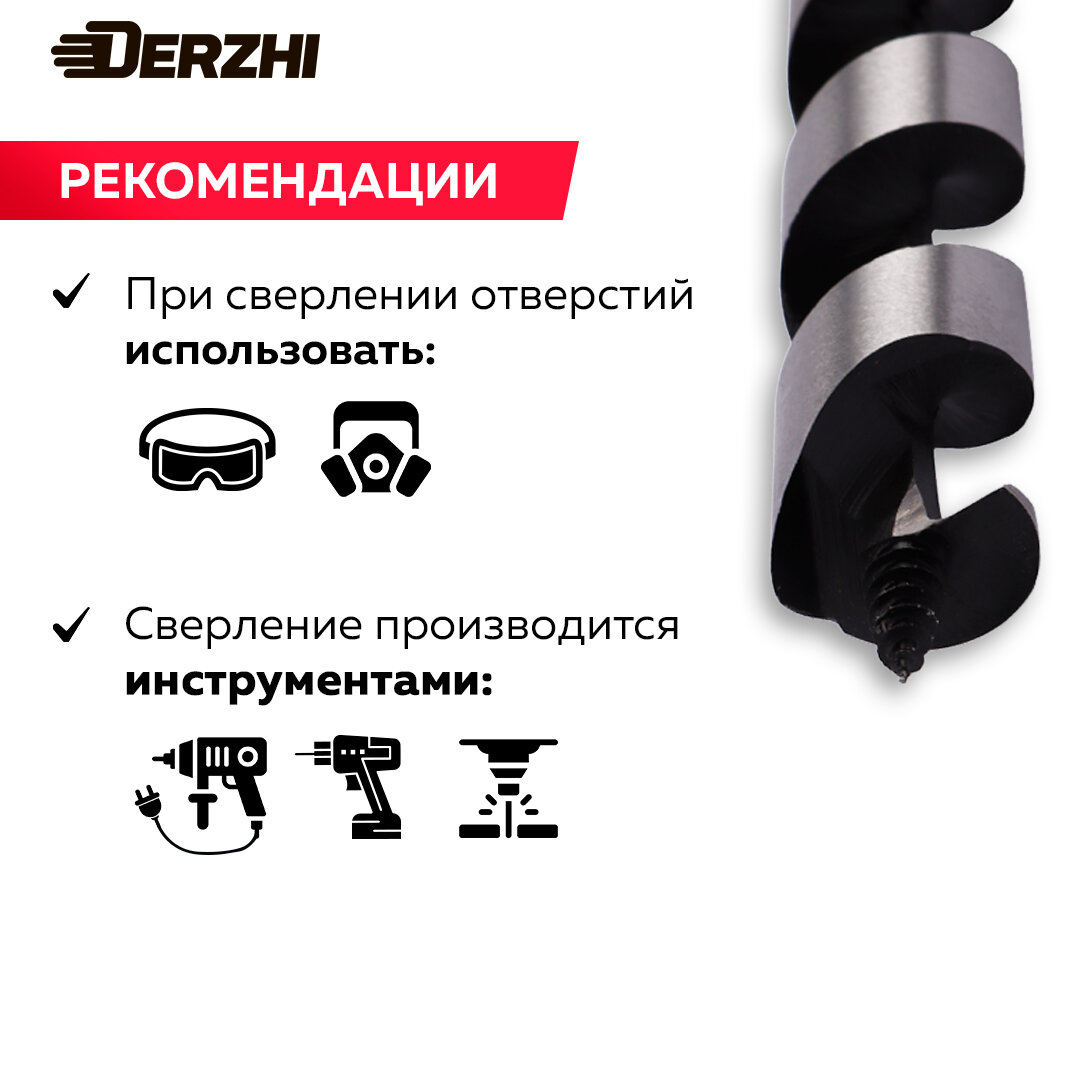 Сверло DERZHI, винтовое, шестигранный хвостовик, по дереву, 25x460мм