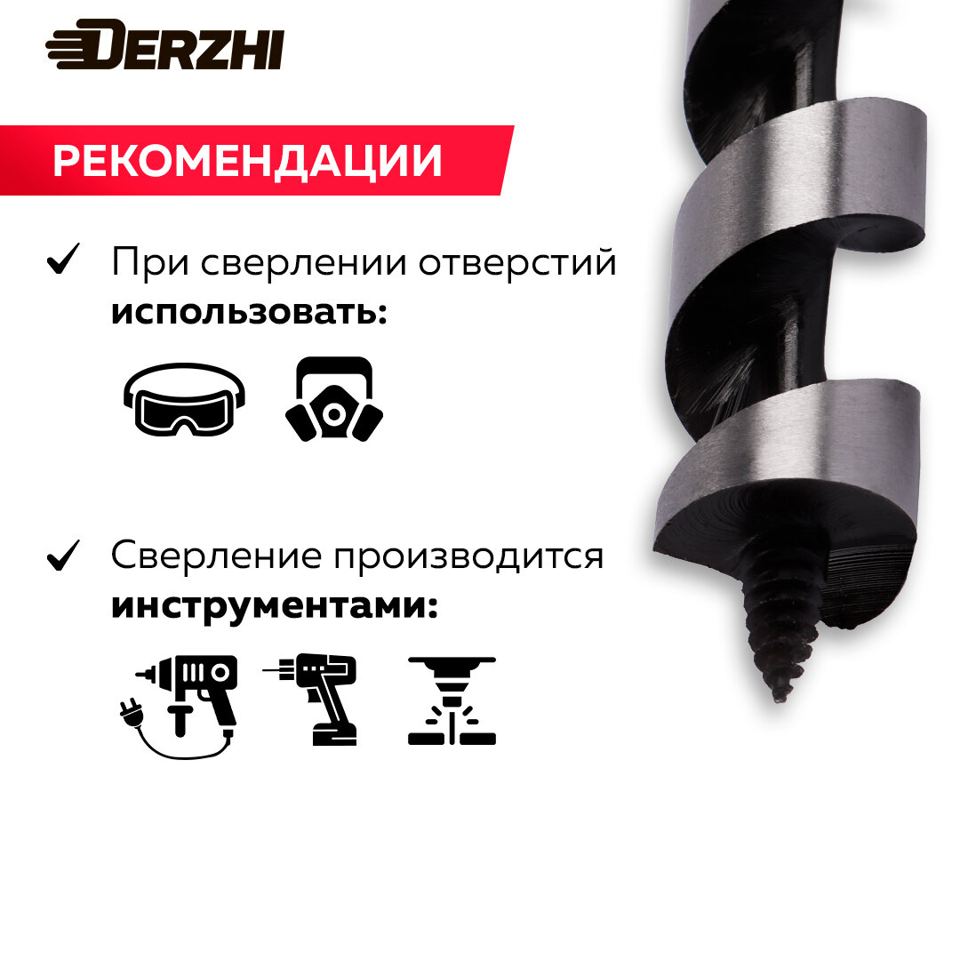 Сверло DERZHI, винтовое, шестигранный хвостовик, по дереву, 25x460мм