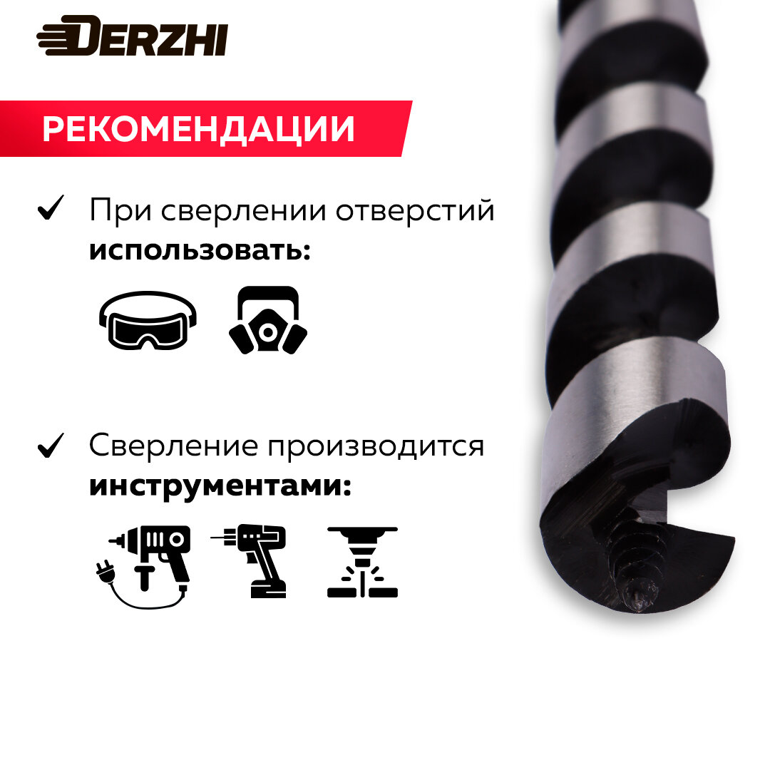 Сверло DERZHI, винтовое, шестигранный хвостовик, по дереву, 25x460мм