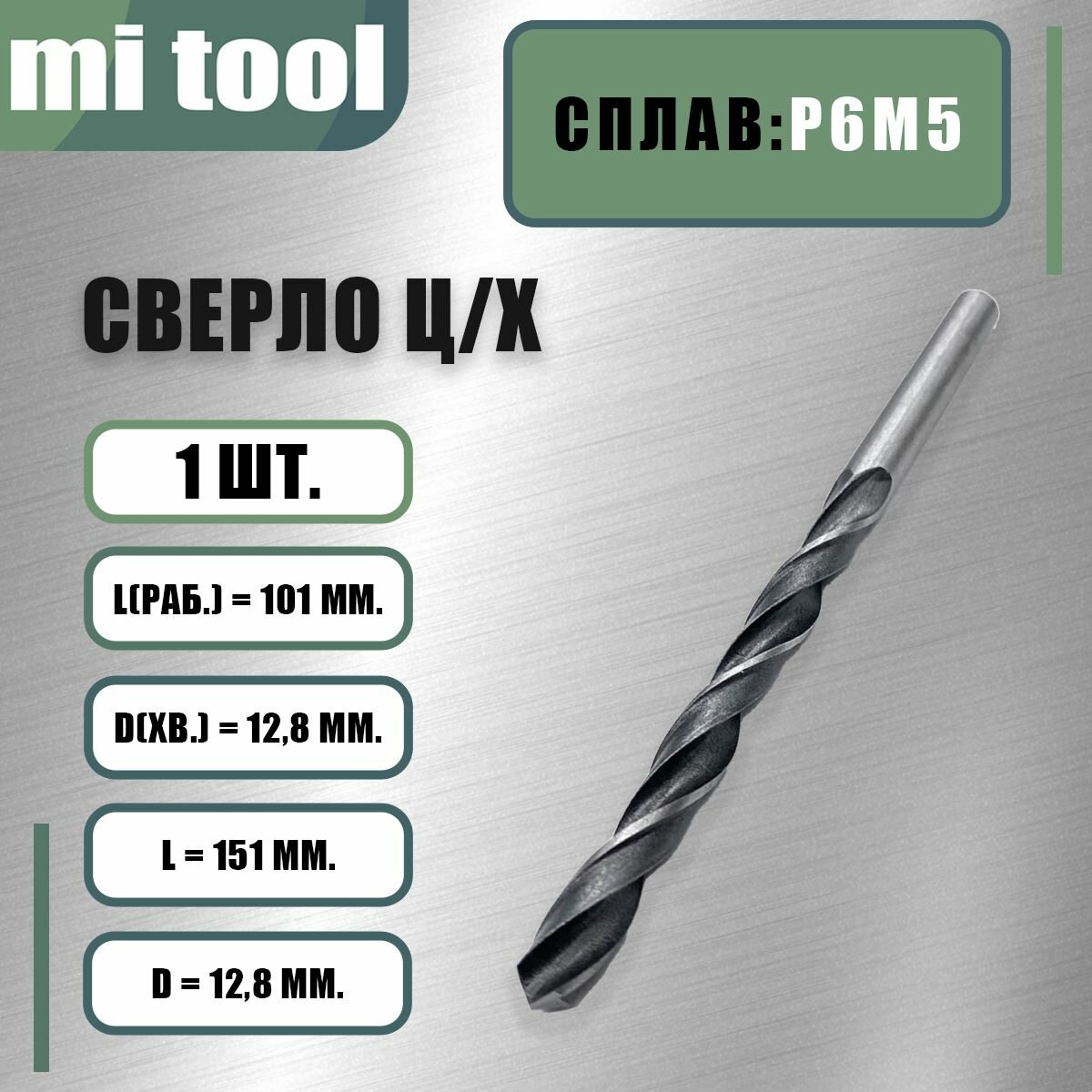 Купить Сверло 12,8 мм ц/х по металлу Р6М5 класс "В"