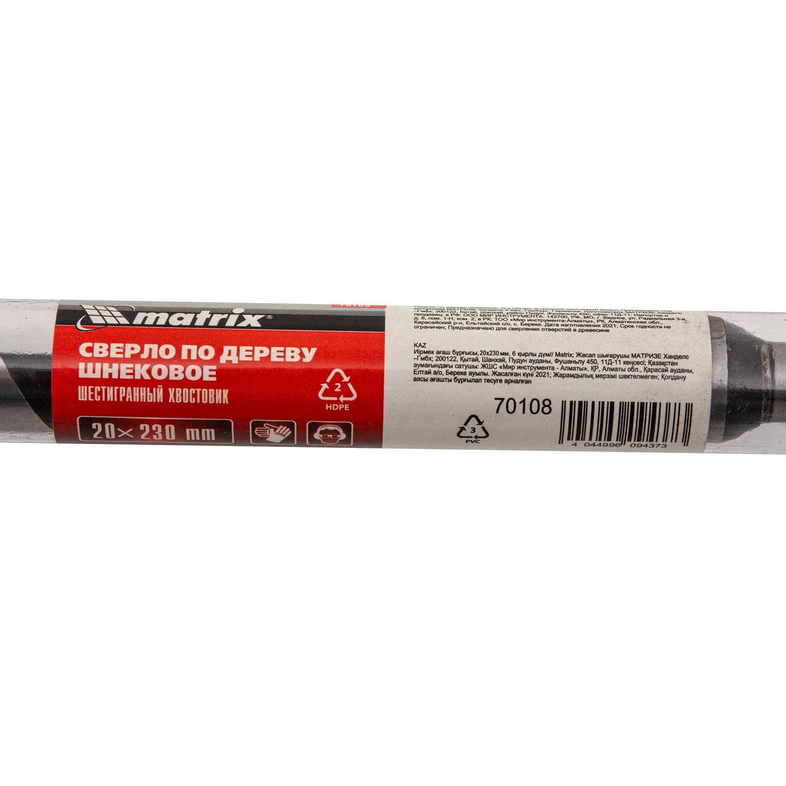Купить Сверло по дереву шнековое Matrix, 20 х 230 мм, 6-гранный хвостовик, закаленная инструментальная сталь, 70108
