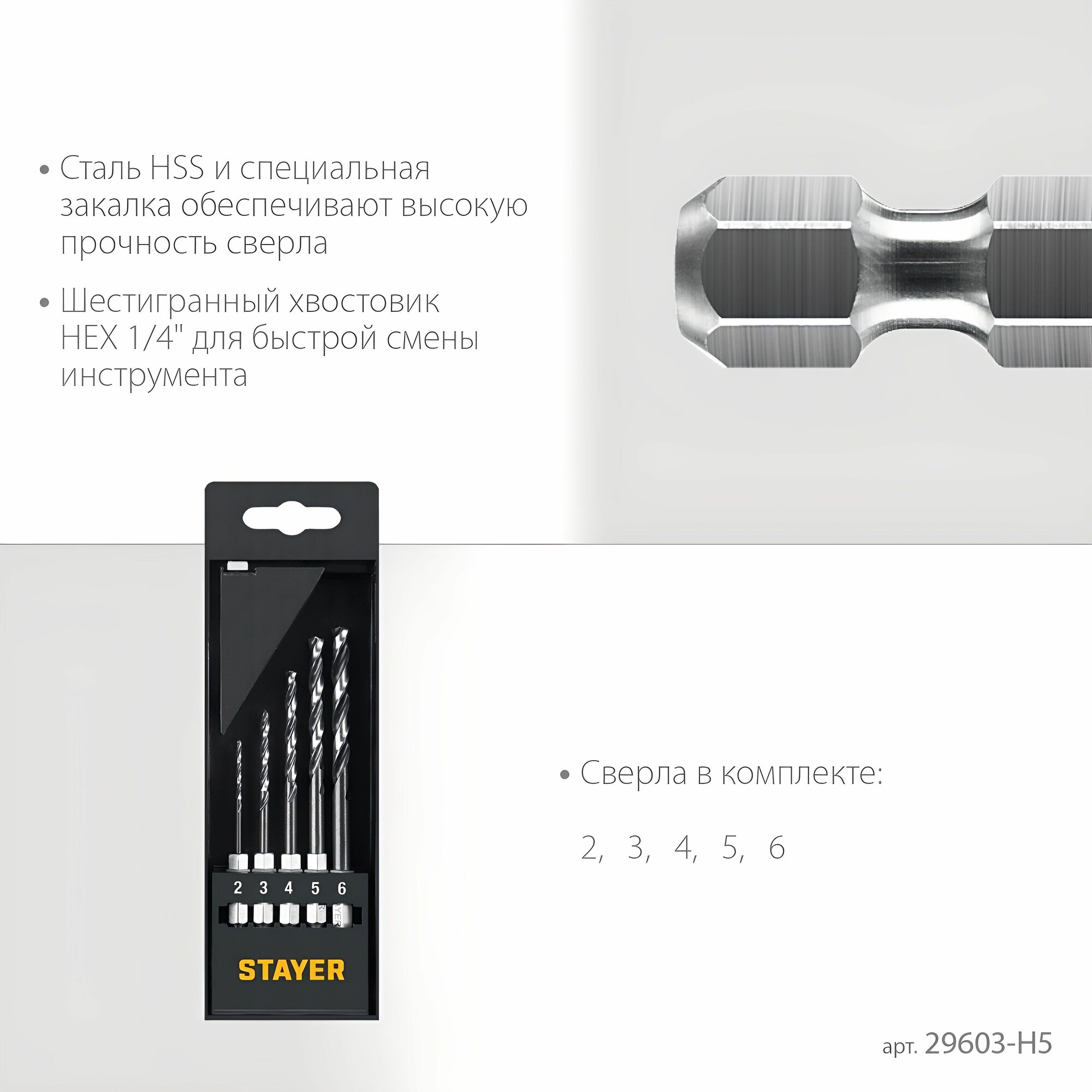 Набор сверл по металлу для винтовёртов и шуруповертов IMPACT READY STAYER НЕХ;1/4 , 5 шт (29603-H5) интересное: