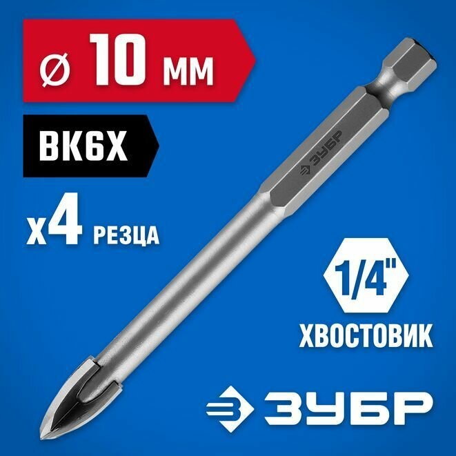 Купить Сверло по керамике и стеклу ЗУБР Профессионал 29845-10 10 x 90 мм