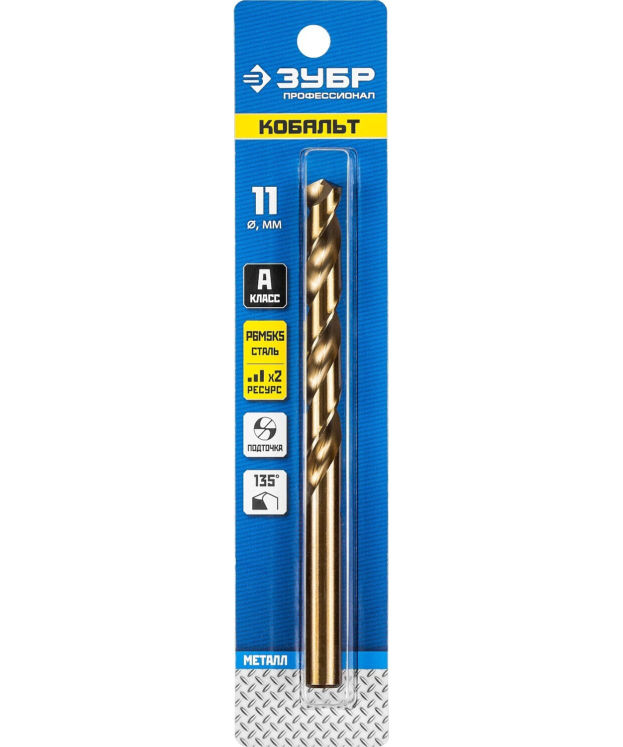 Купить Сверло по металлу кобальт 11.0х142 мм Р6М5 класс А ЗУБР 29626-11