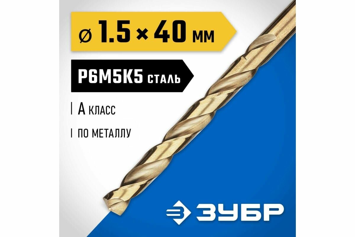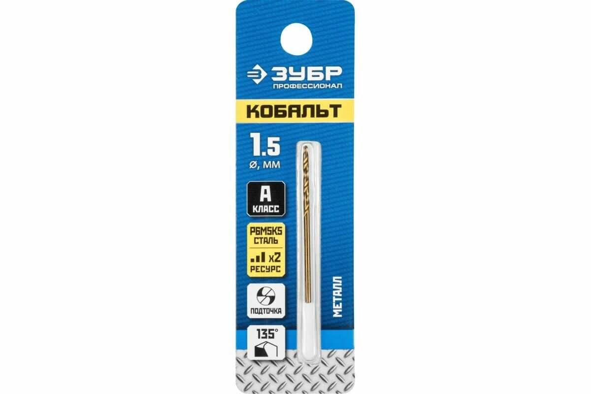 ЗУБР кобальт 1.5х40мм, Сверло по металлу, сталь Р6М5, класс А, , Серия Профессионал (29626-1.5)