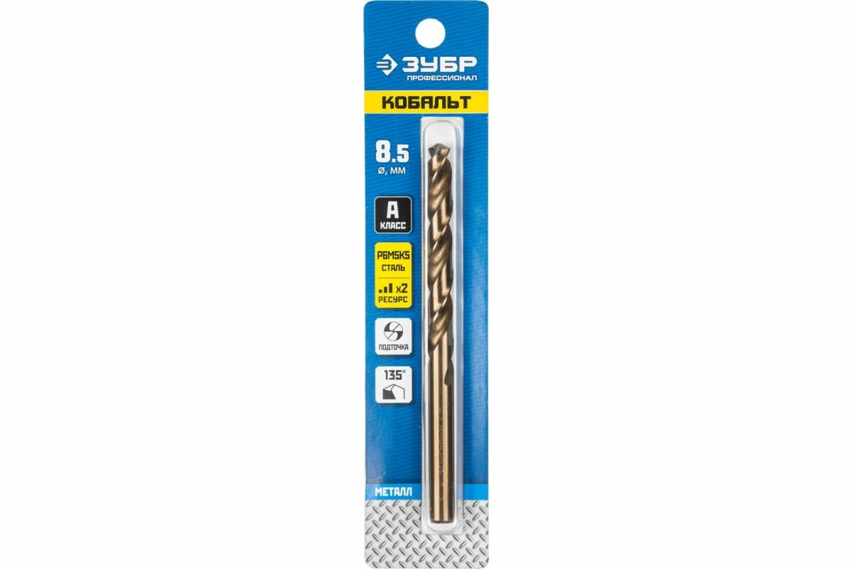 Купить Сверло по металлу ЗУБР Кобальт 8.5х117 мм, сталь Р6М5К5 29626-8.5