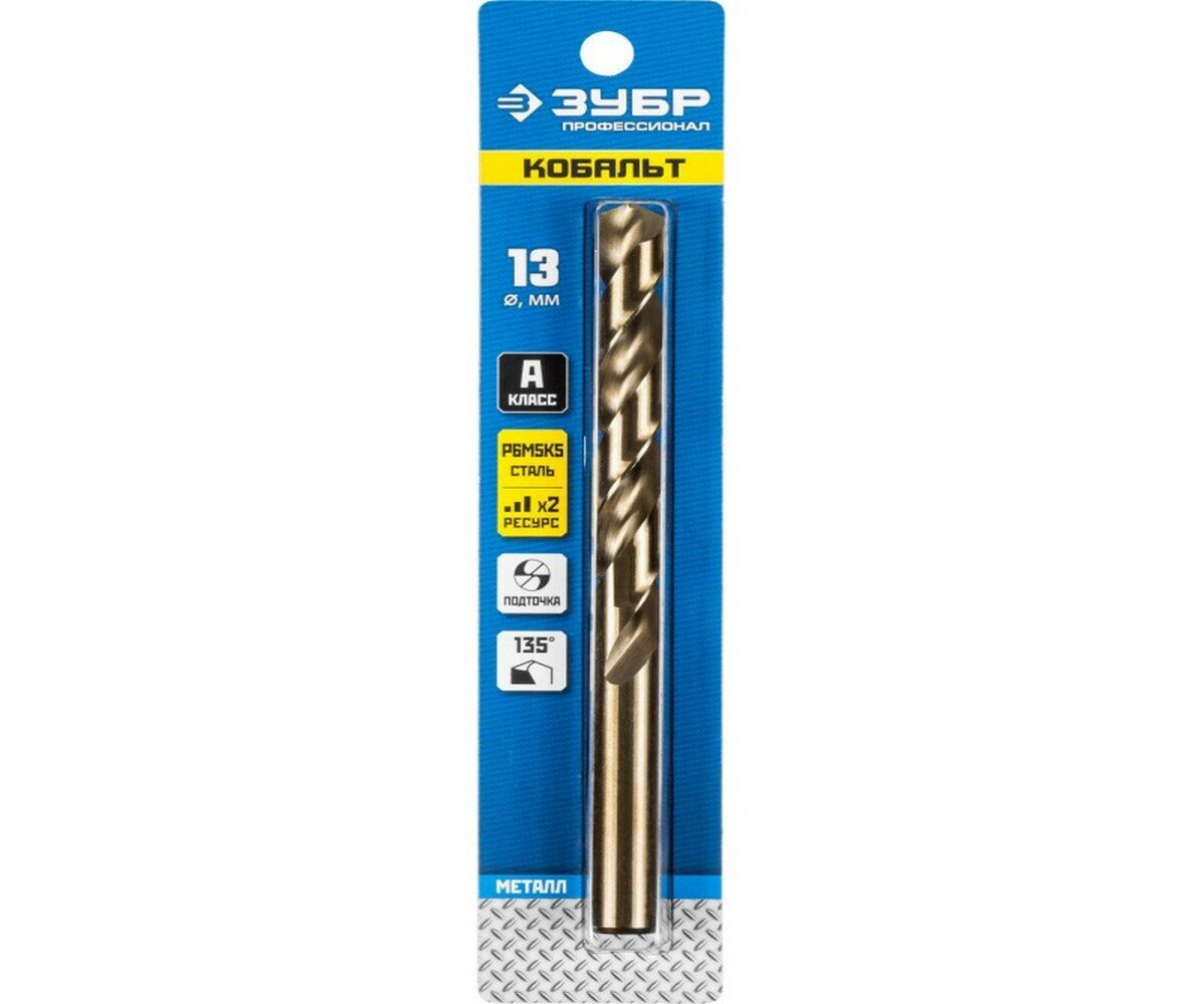 Купить Сверло по металлу Зубр кобальт 13.0х151мм, сталь Р6М5, класс А