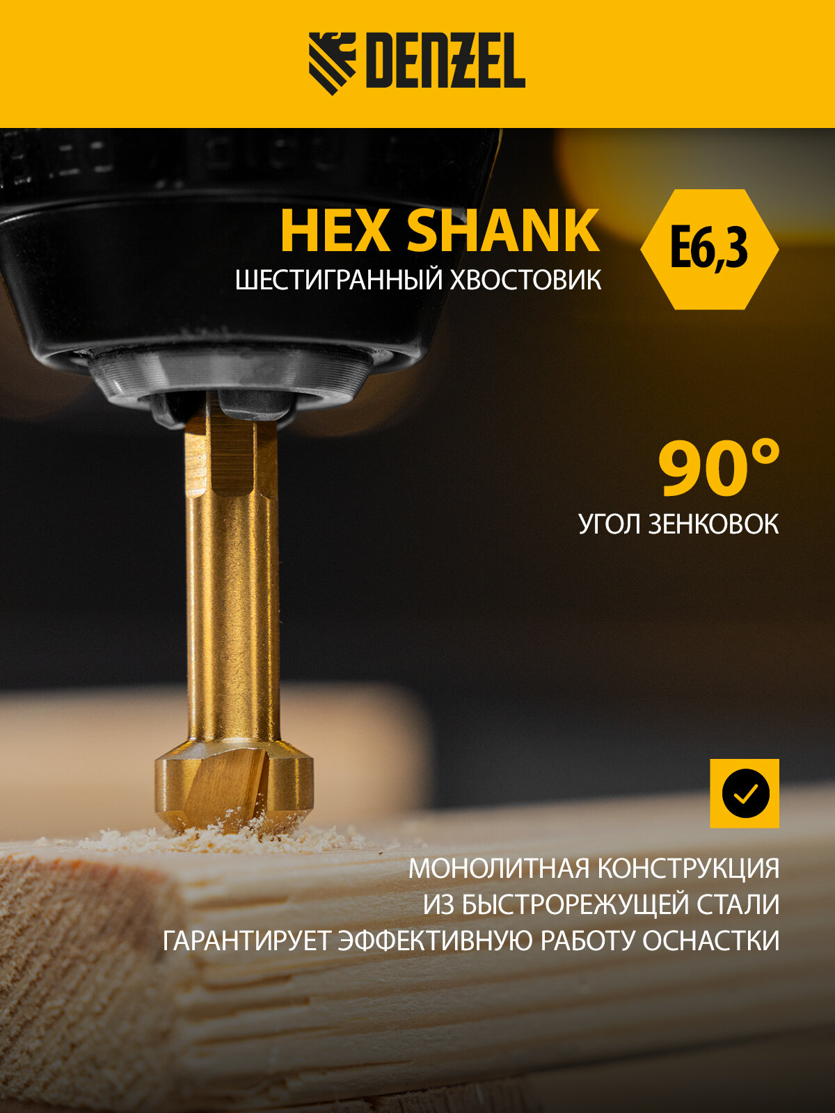 Зенковка конусная под М6 Denzel HSS, по металлу, цилиндрический хвостовик 72307