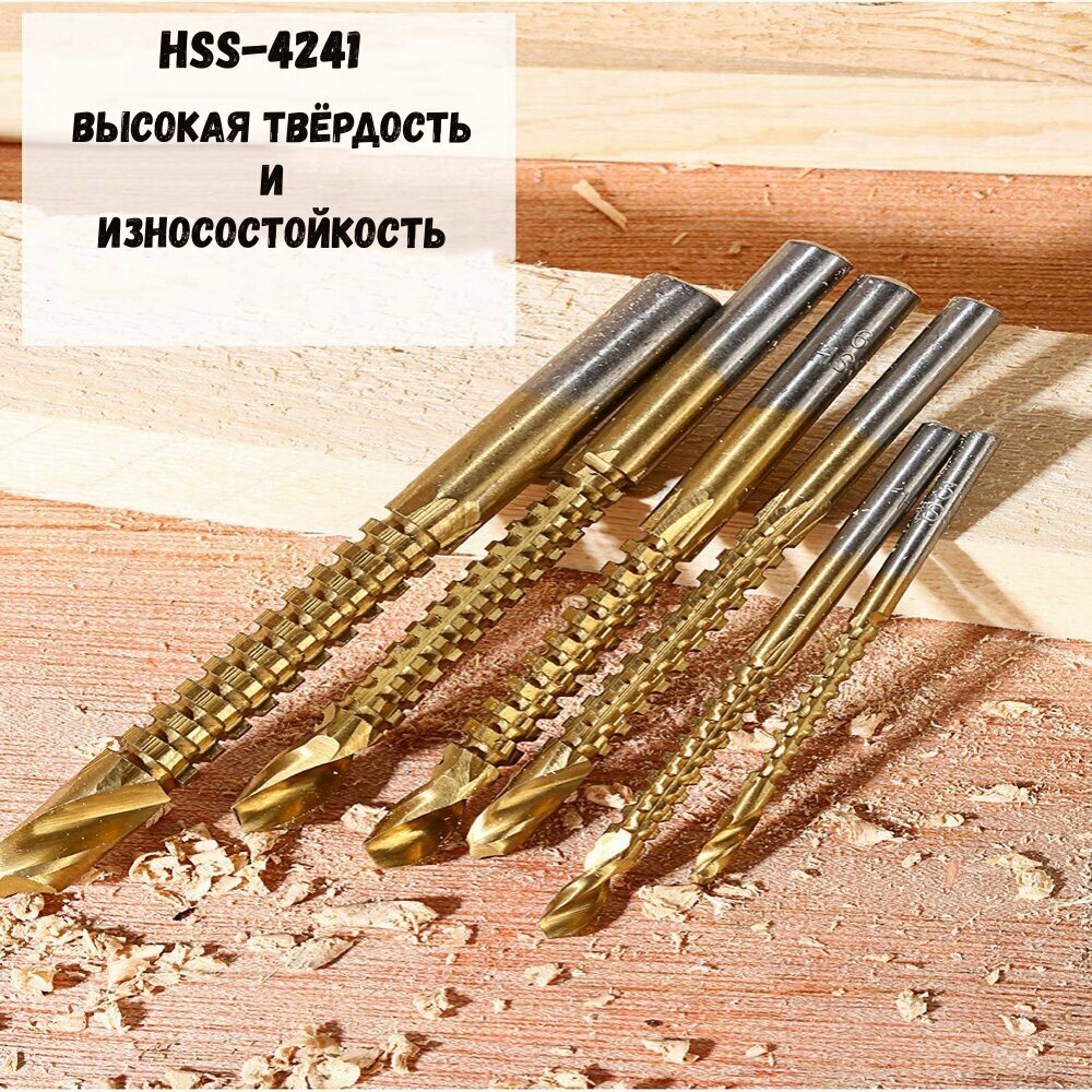 Набор сверл фрезеровальных "Кукуруза", 3мм.4мм. 5мм. 6мм. 6,5мм. 8мм. 6в1 золото интересное: