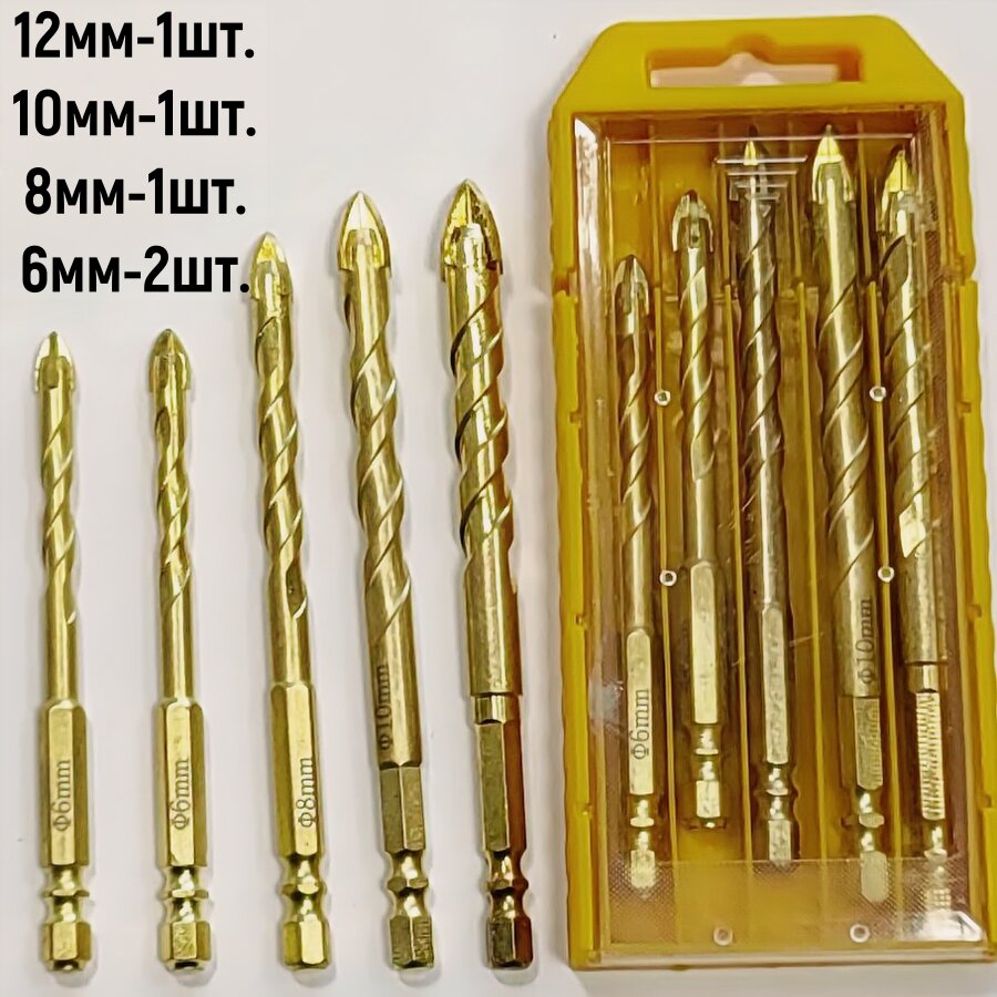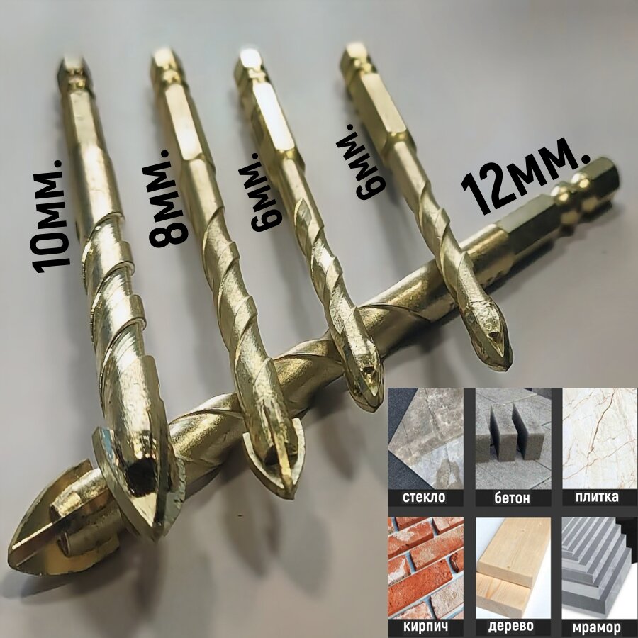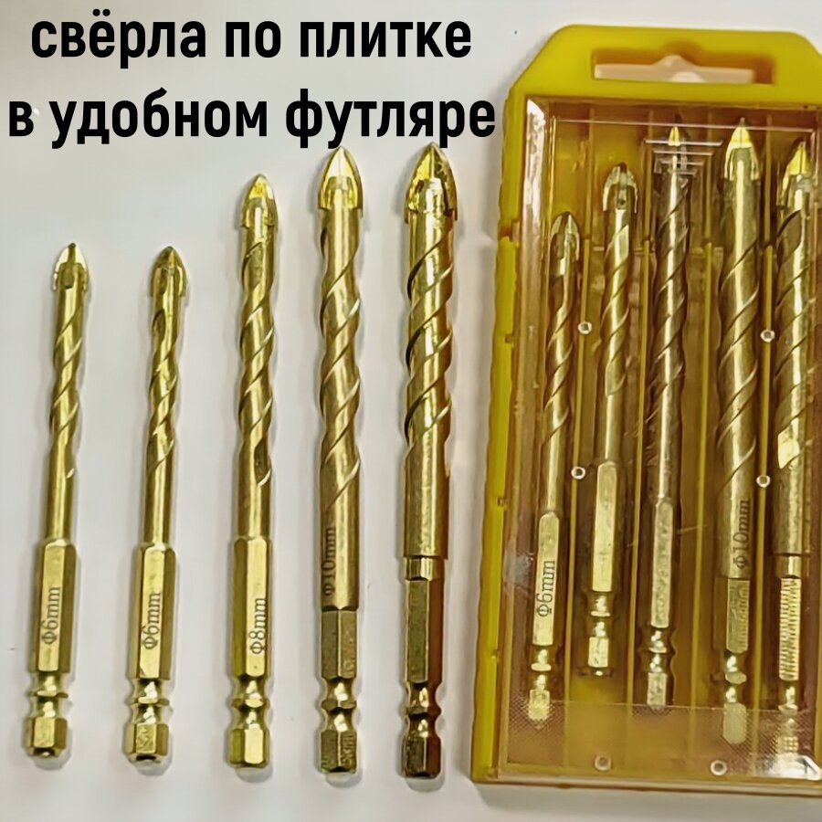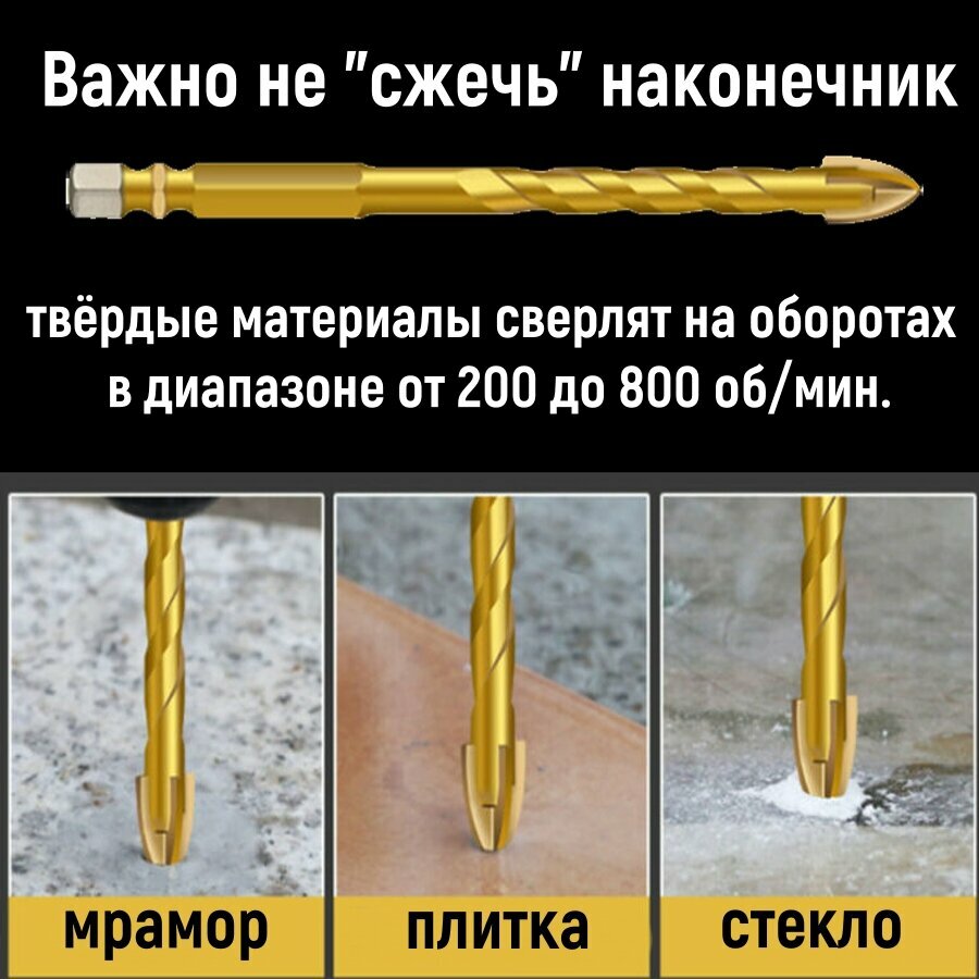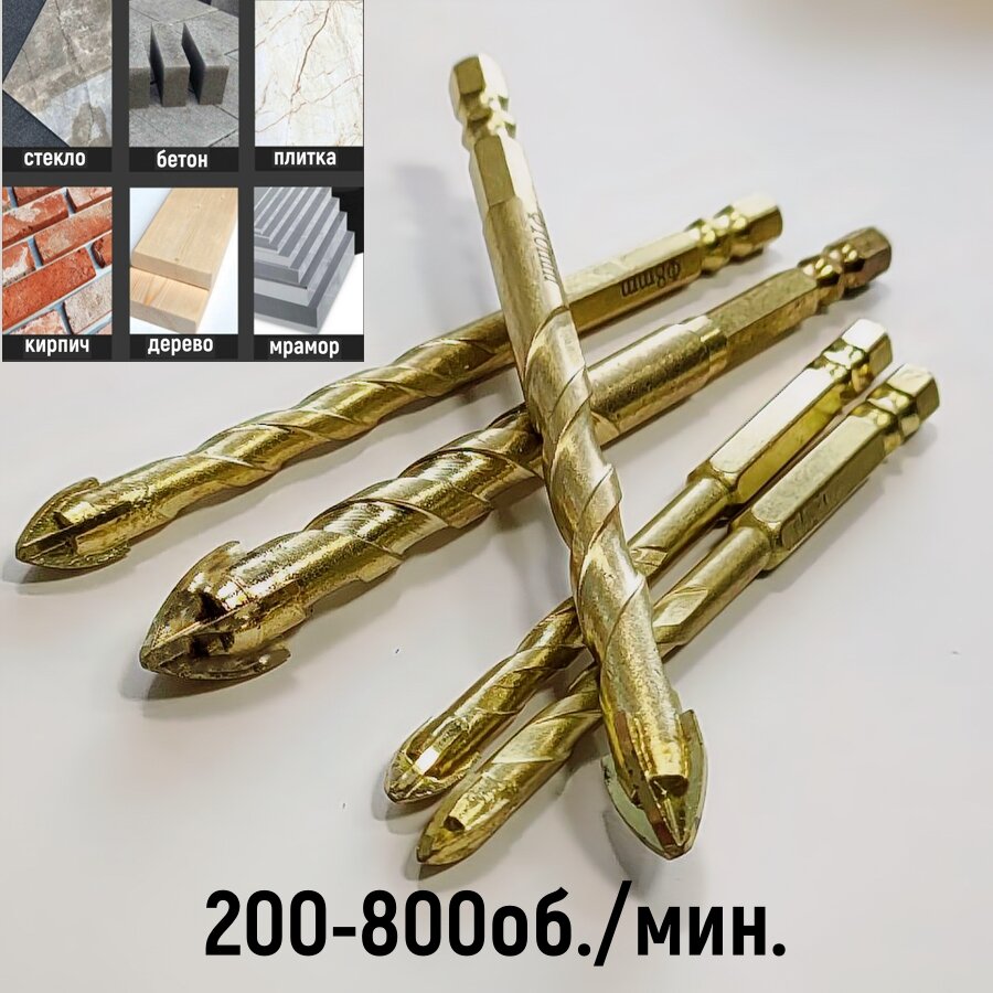 Сверло по бетону и плитке с крестовым наконечником золото 5в1 интересное:
