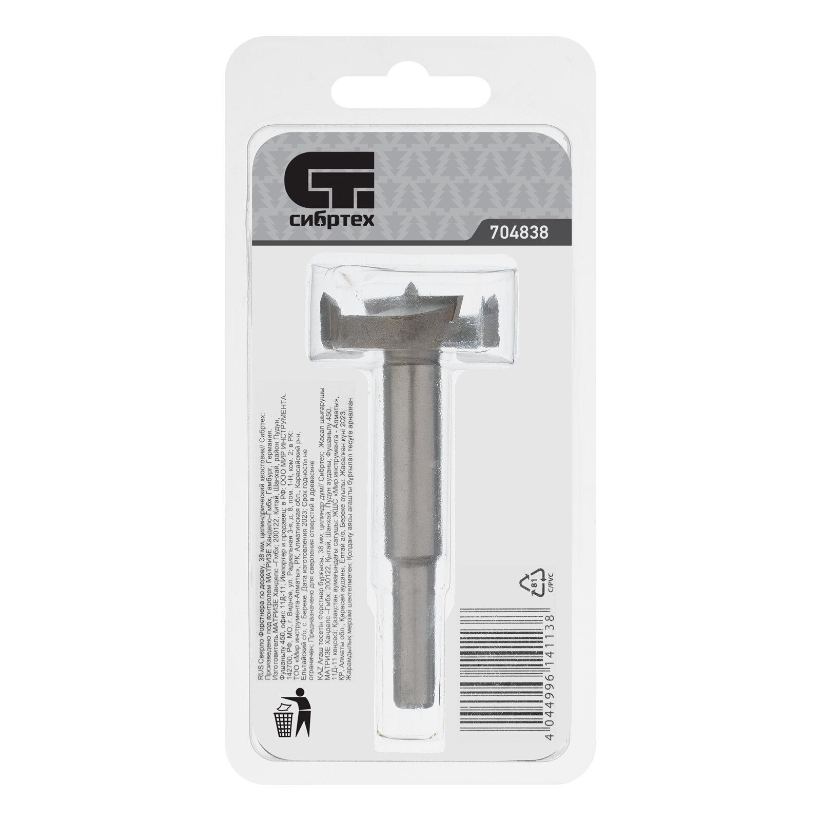 Купить Сверло Форстнера по дереву Сибртех, 38 мм, цилиндрический хвостовик, сталь 45, 704838