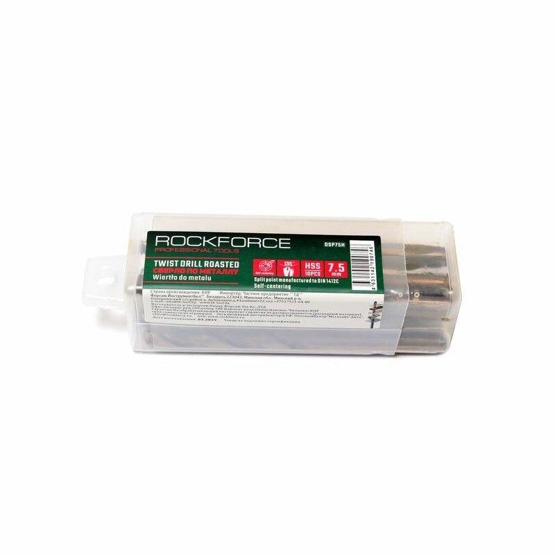 Сверло по металлу 7.5мм HSS+Co(10шт), в пластиковом футляре ROCKFORCE