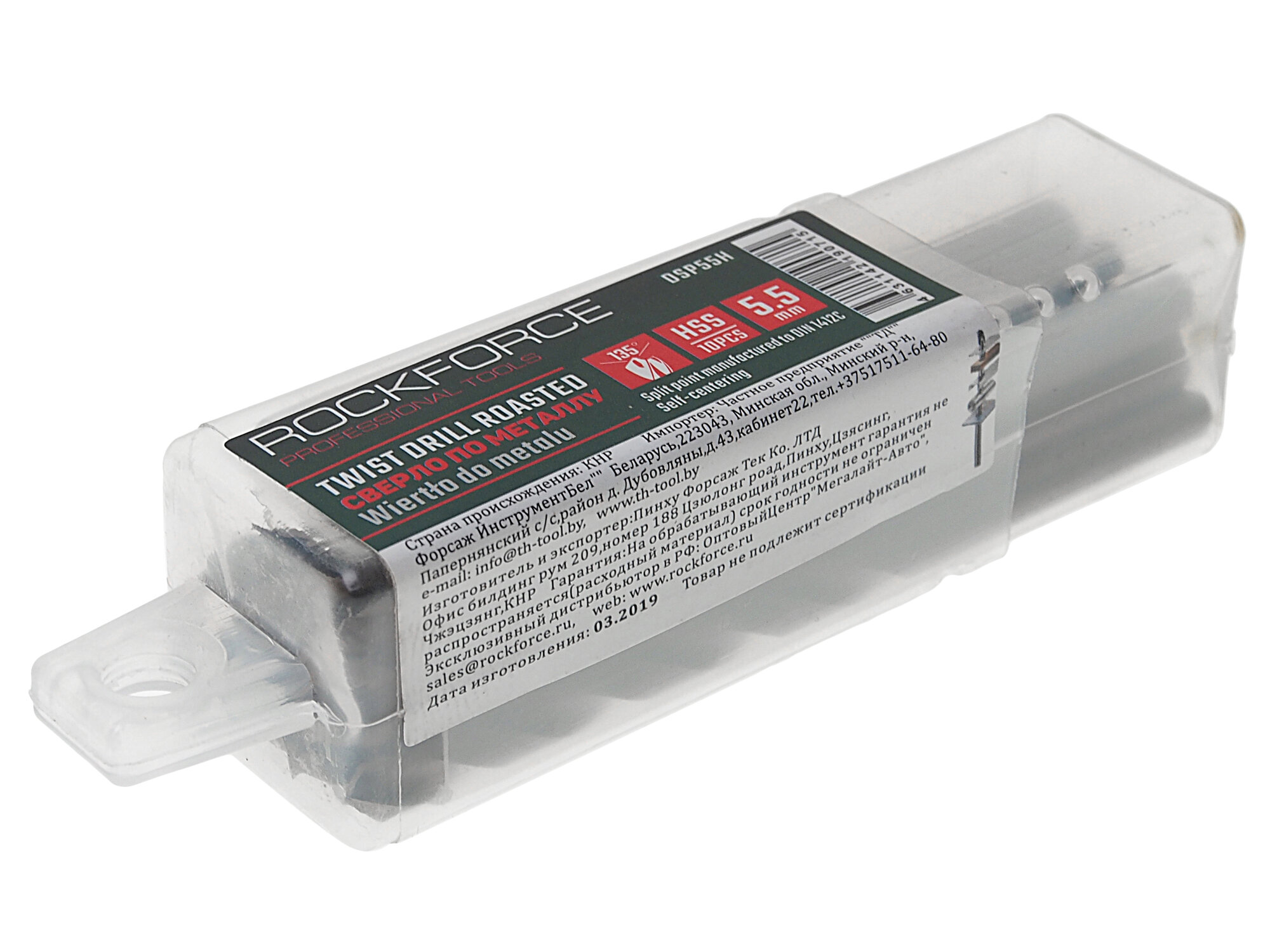 Купить Сверло по металлу 5.5мм HSS+Co(10шт), в пластиковом футляре ROCKFORCE