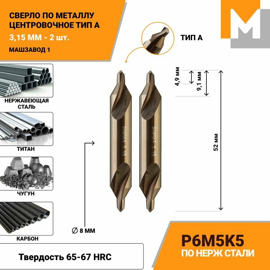 Сверло по металлу центровочное 3.15 мм - 2 шт тип А Р6М5К5 интересное: