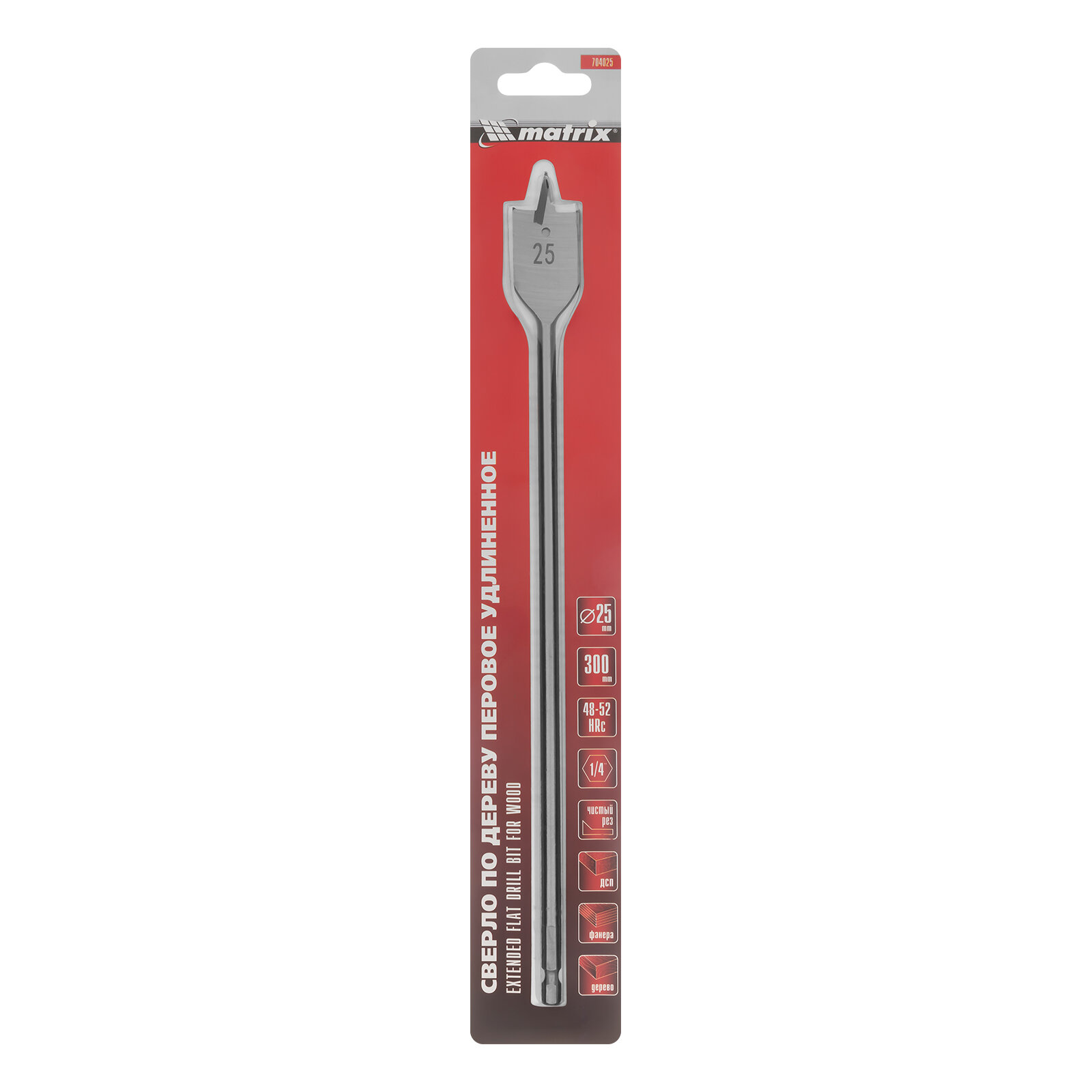 Сверло по дереву перьевое удлиненное Matrix, 25 х 300 мм, 6-гранный хвостовик, сталь 45, перовое 704025 интересное: