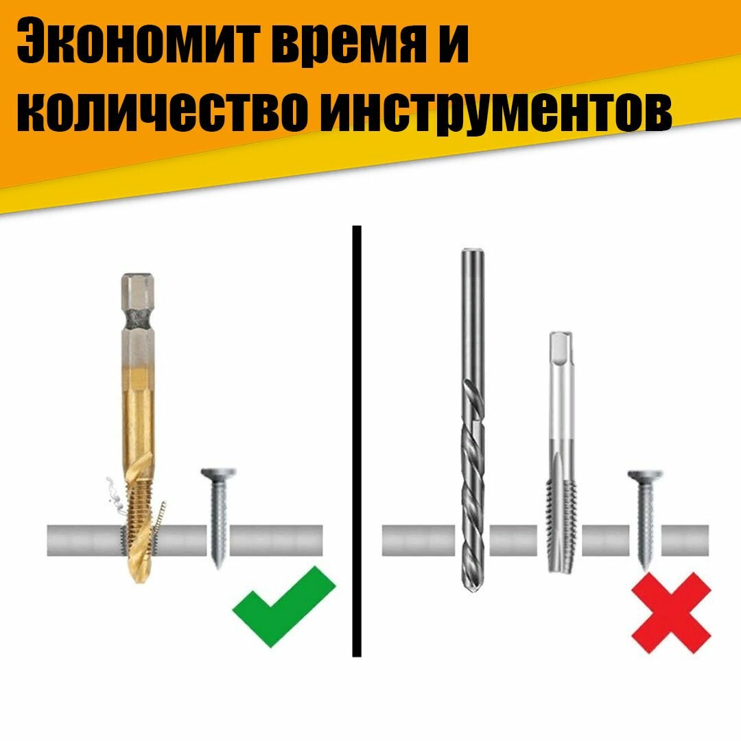 Сверло метчик по металлу с титановым покрытием, набор из 6 шт интересное: