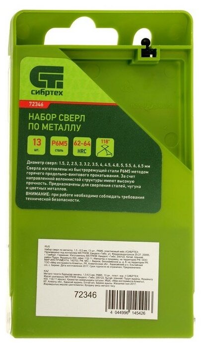 Набор сверл по металлу Сибртех 1, 5 - 6, 5 мм, 13 шт, Р6М5, пластиковый кейс 72346 интересное: