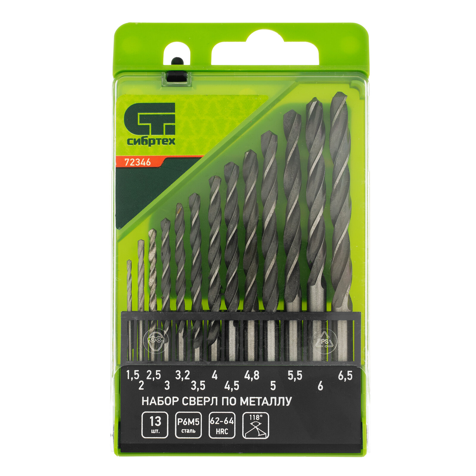 Купить Набор сверл по металлу Сибртех 1, 5 - 6, 5 мм, 13 шт, Р6М5, пластиковый кейс 72346