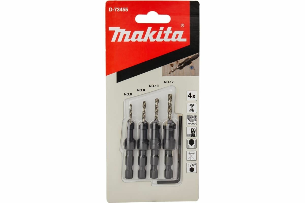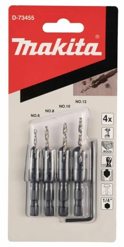 Набор сверл по дереву с зенкером 6-8-10-12мм Makita D-73455 (4 шт; 1/4") интересное: