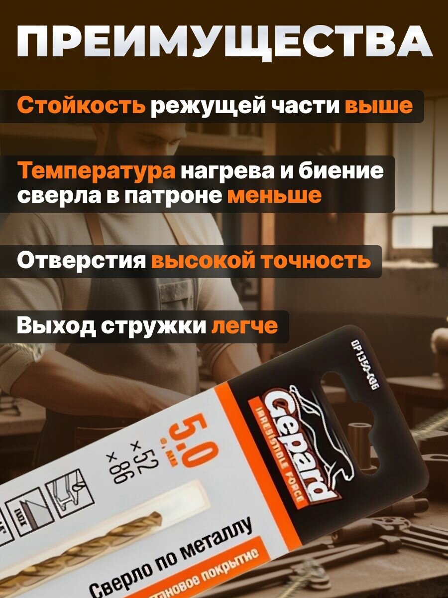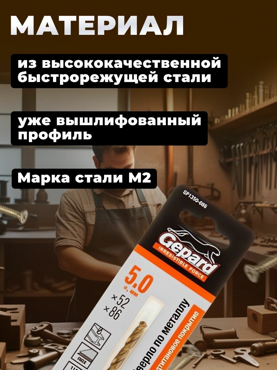 Купить Сверло по металлу спиральное 5х52х86 мм GEPARD HSS TIN (GP1350-086)