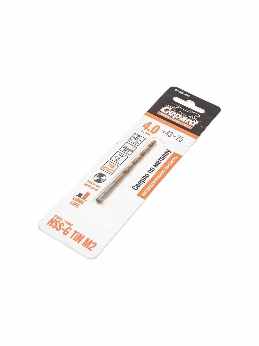 Купить Сверло по металлу спиральное 4х43х75 мм GEPARD HSS TIN (GP1340-075)