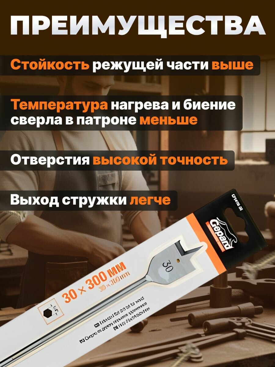СохранитьСверло по дереву перьевое 30х300 мм GEPARD удлиненное (GP0416-30) интересное: