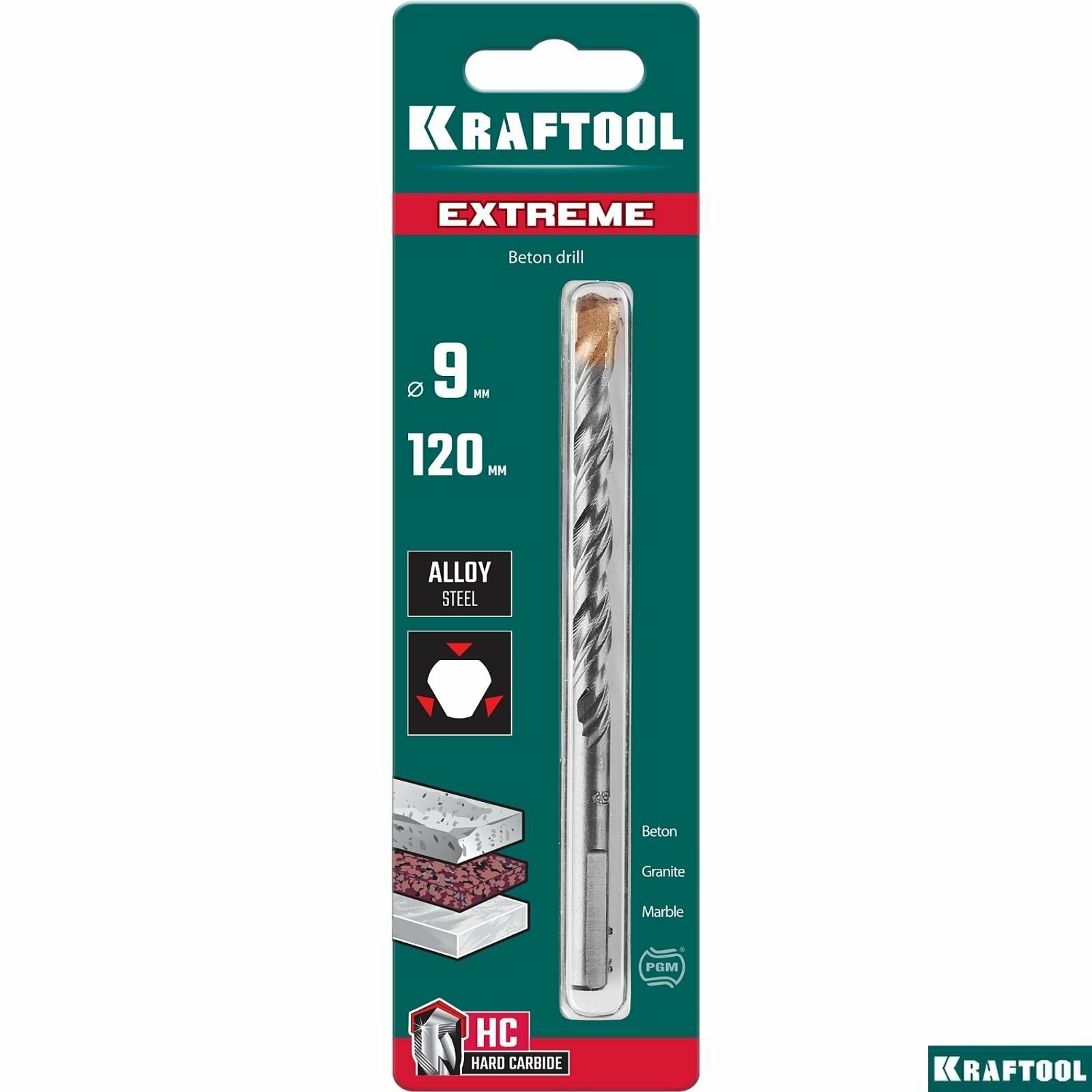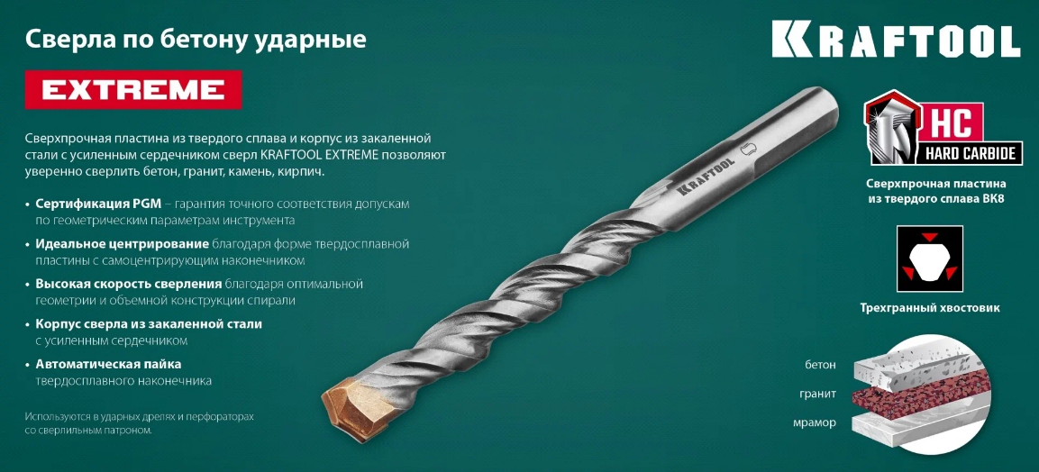Купить KRAFTOOL EXTREME 9 х 120 сверло по бетону, 3-х гранный хвостовик, (29166-120-09)