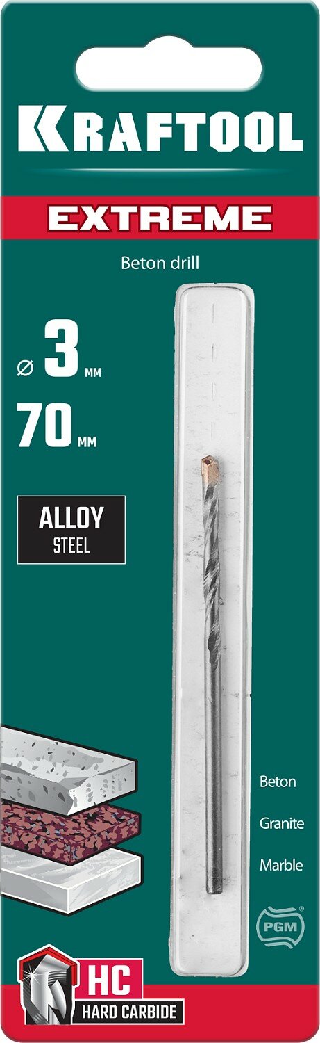 Купить KRAFTOOL EXTREME 3 х 70 мм сверло по бетону, цилиндр. хвостовик, (29166-070-03)