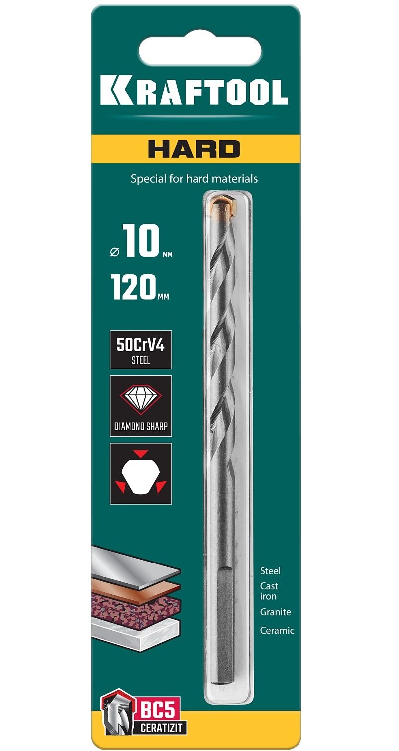 KRAFTOOL HARD 10 х 120 мм специальное cверло по твёрдым материалам