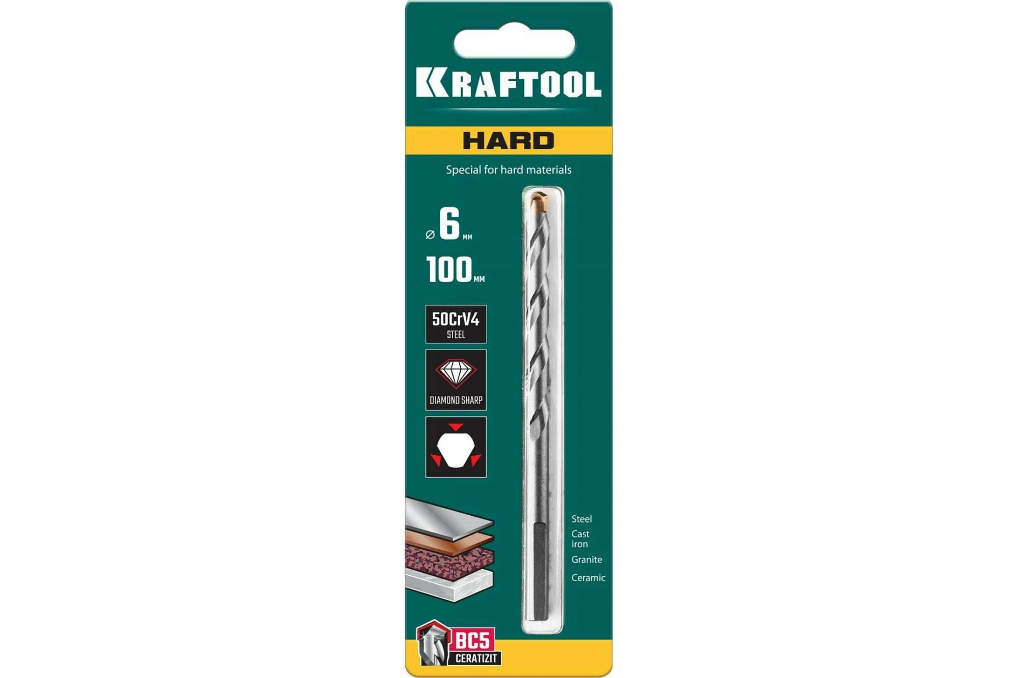 Сверло специальное по твёрдым материалам HARD, 6 х 100 мм, KRAFTOOL