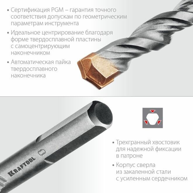 KRAFTOOL EXTREME 9 х 120 сверло по бетону, 3-х гранный хвостовик, (29166-120-09)