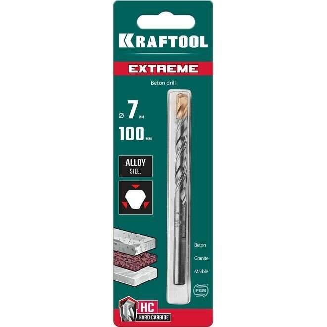KRAFTOOL EXTREME 7 х 100 сверло по бетону, 3-х гранный хвостовик