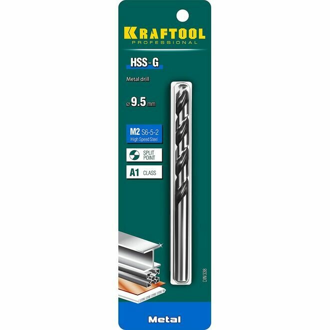 Купить Сверло по металлу Pro, KRAFTOOL 9.5 х 133 мм, HSS-G, сталь М2 (S6-5-2), класс A