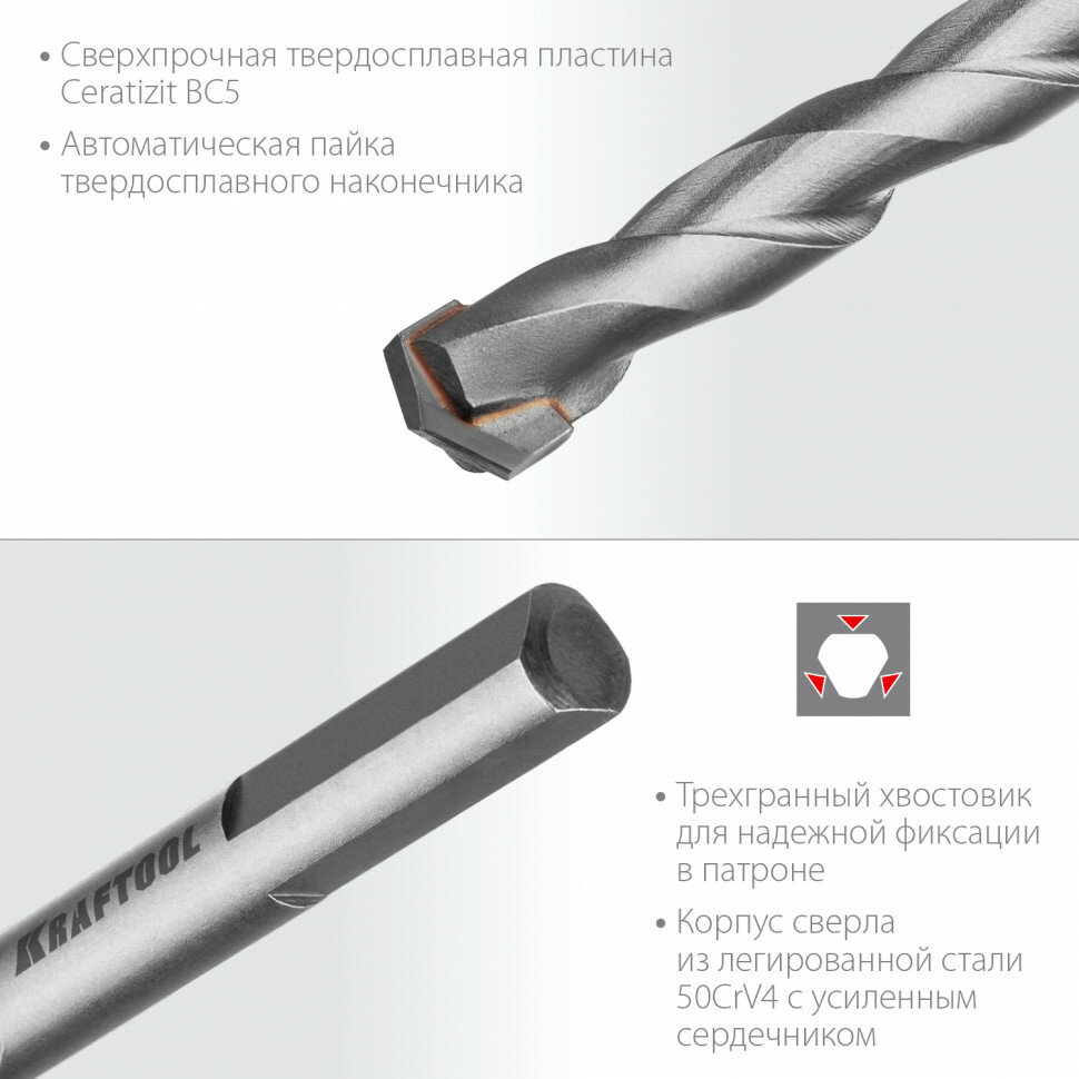 Сверло по бетону EXTREME, 7 х 100 мм, 3-х гранный хвостовик, KRAFTOOL