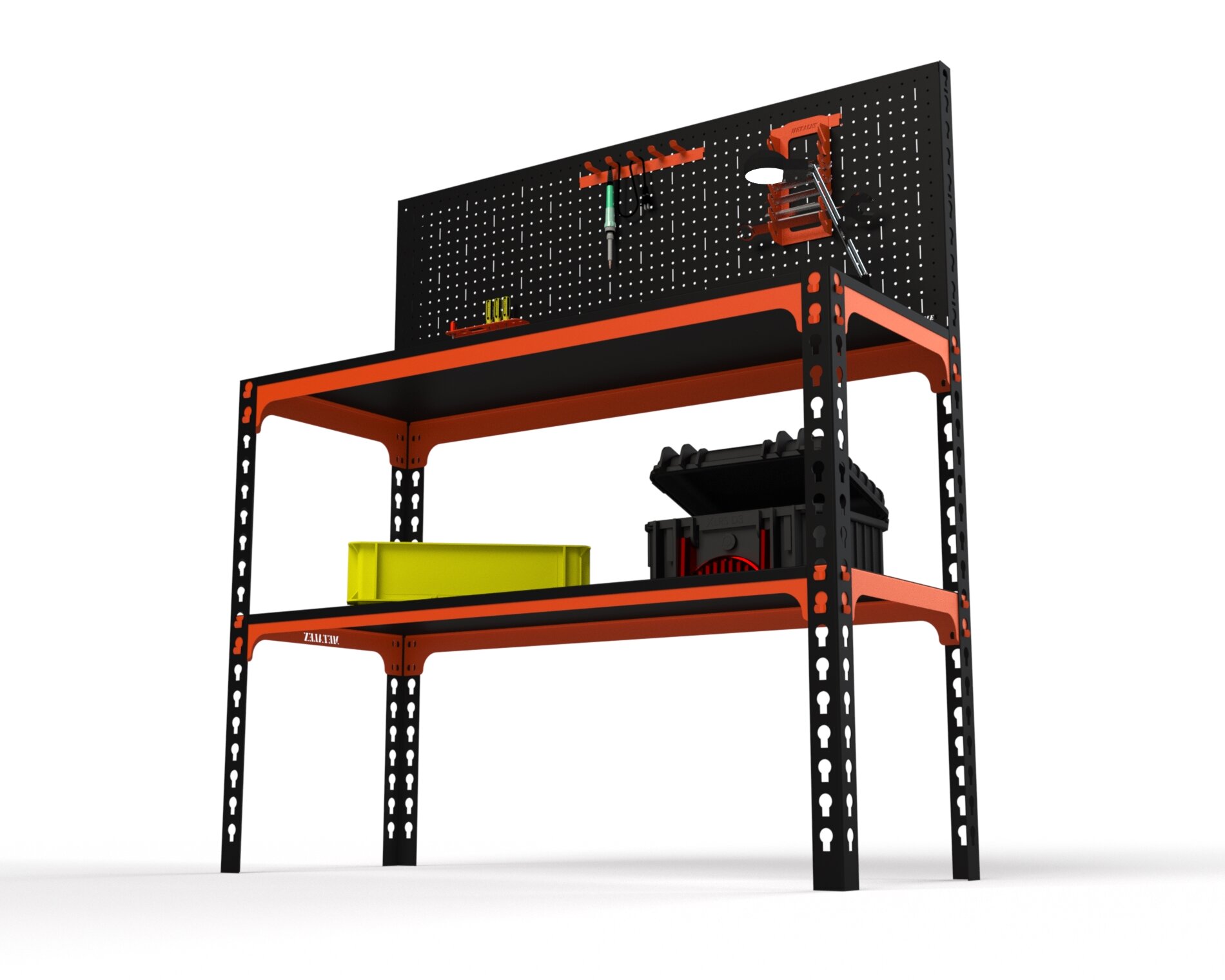 Купить Стол-верстак Metalex 950х1800х500 (одна полка) + перфопанель с комплектом аксессуаров (оранжево-чёрный)