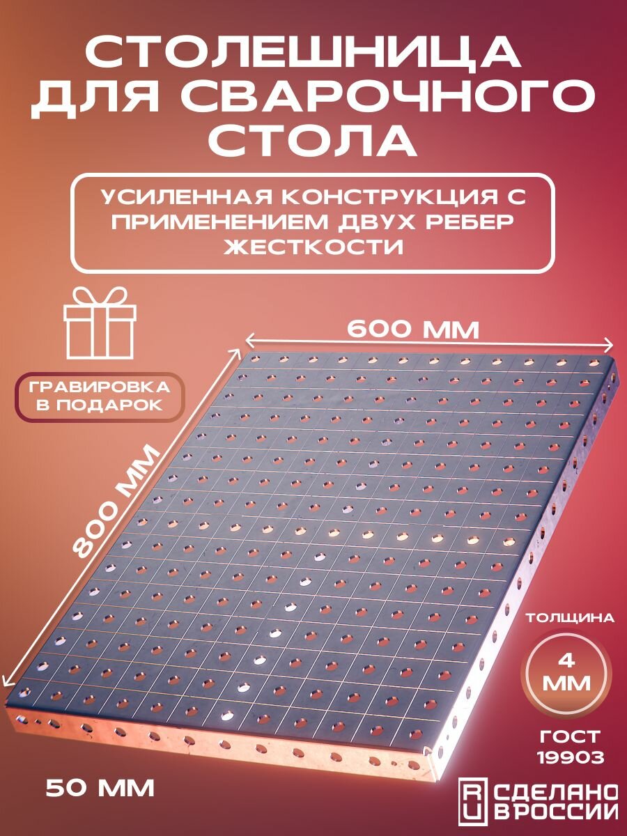 Столешница для сварочного стола 800х600х50 4 мм усиленная под крепёж 8мм интересное: